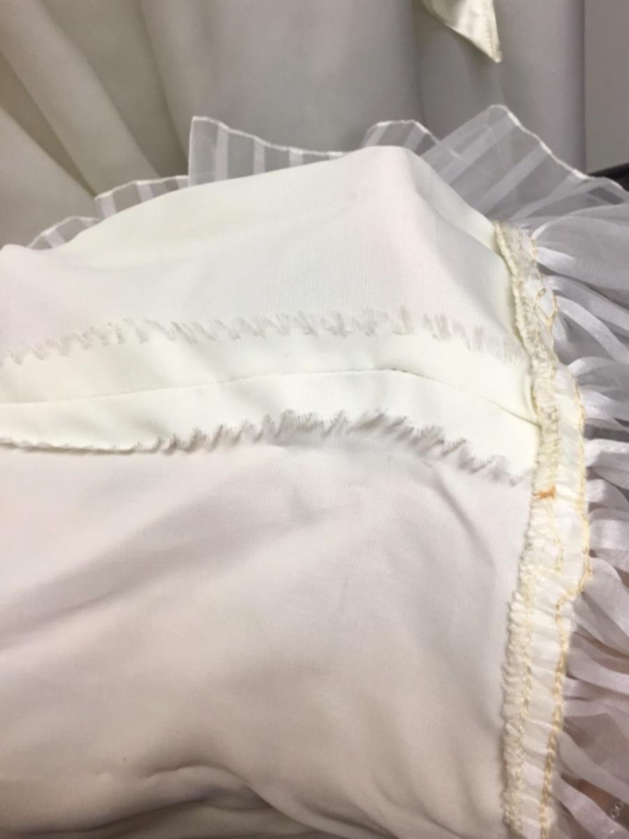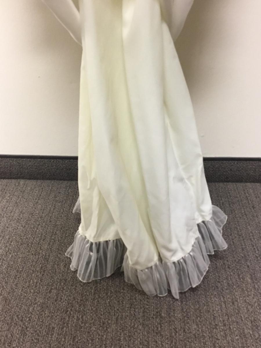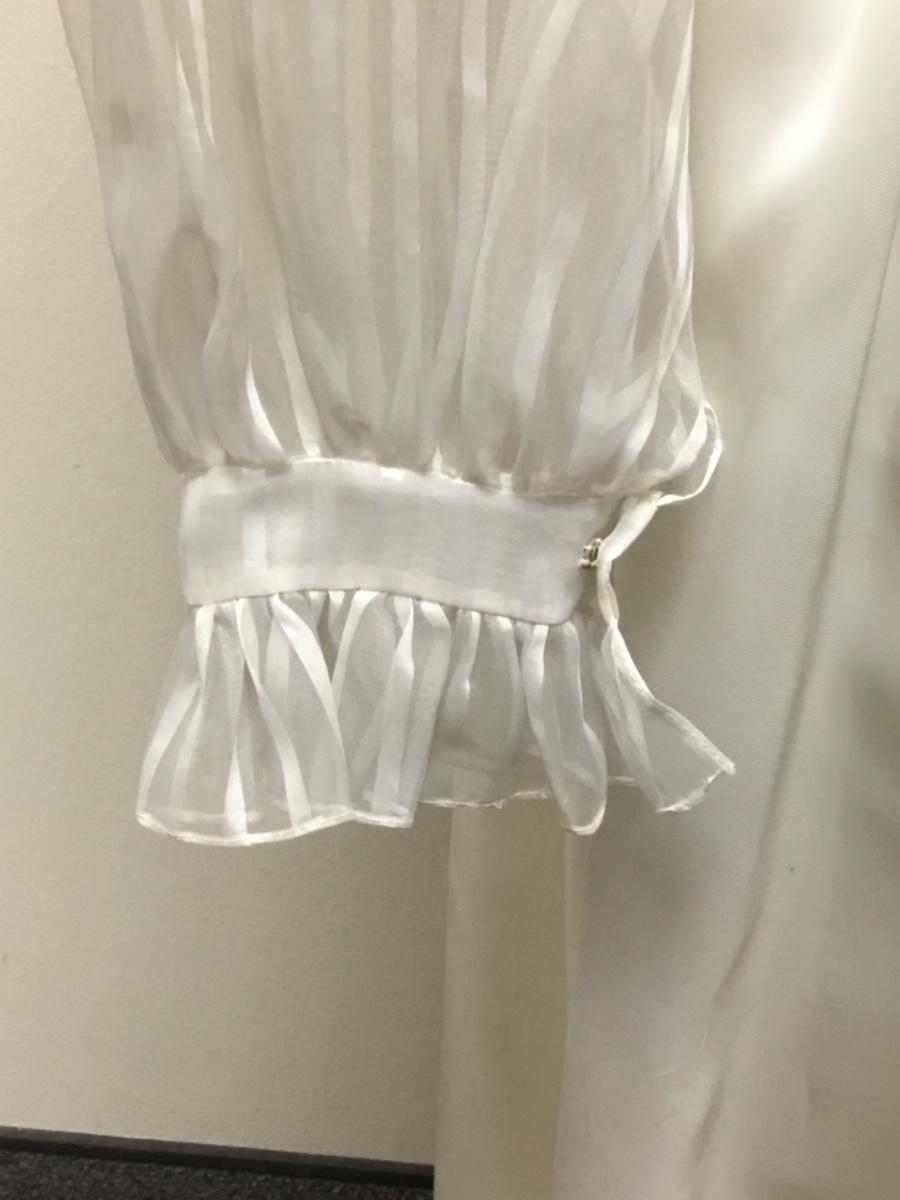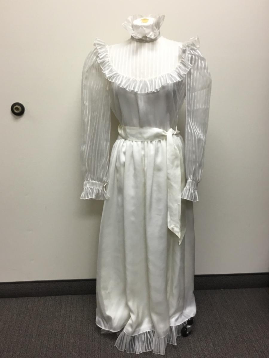 Size is most likely a medium. The sleeves have clips on the end. Comes with a ribbon to tie around the waist. There is lace on the back.