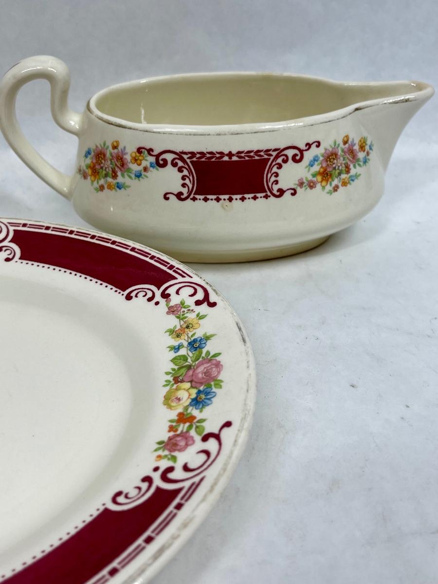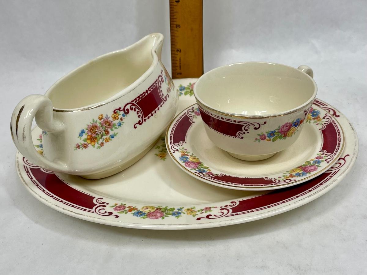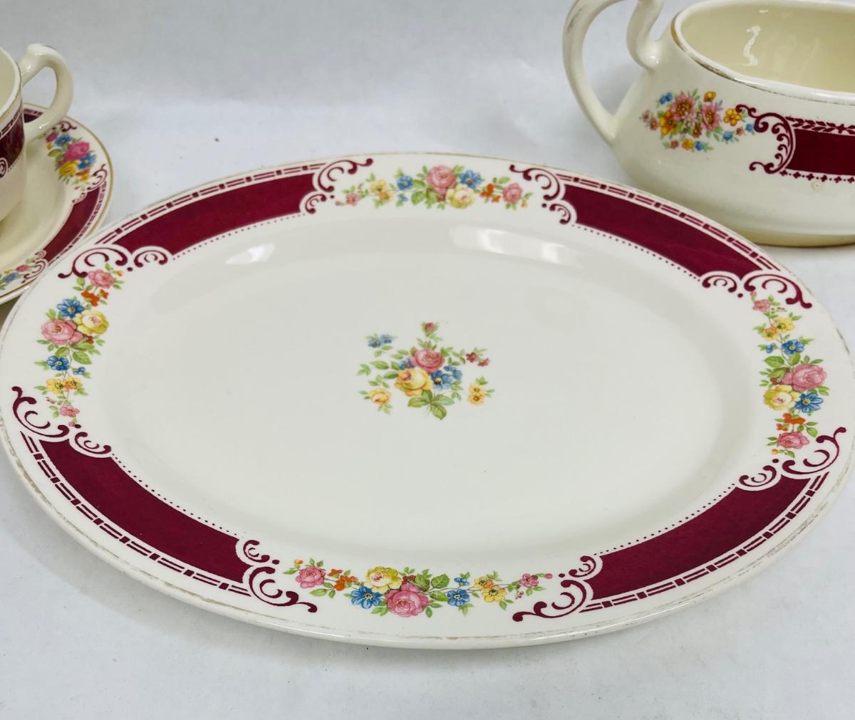 Homer Laughlin Ceramic Pottery Burgundy border with flowers A43N6 Made in USA