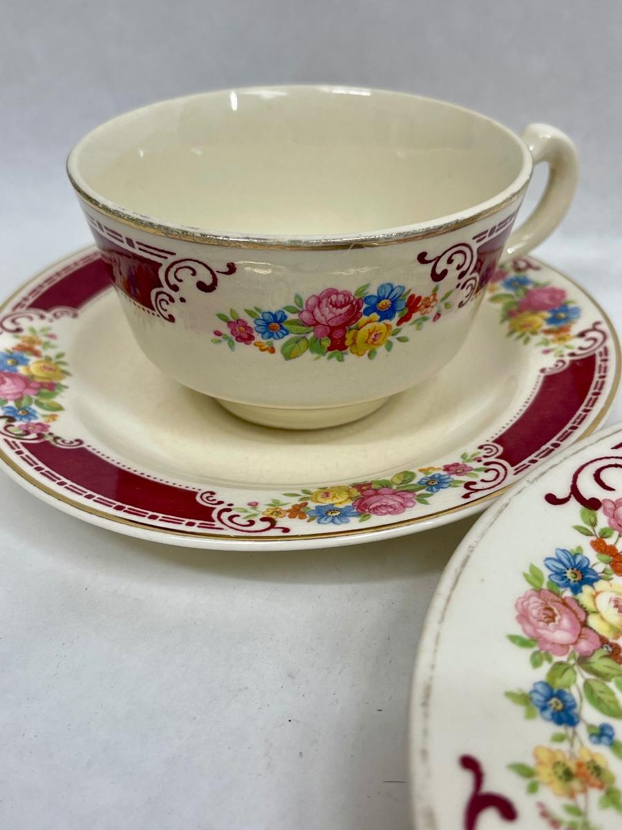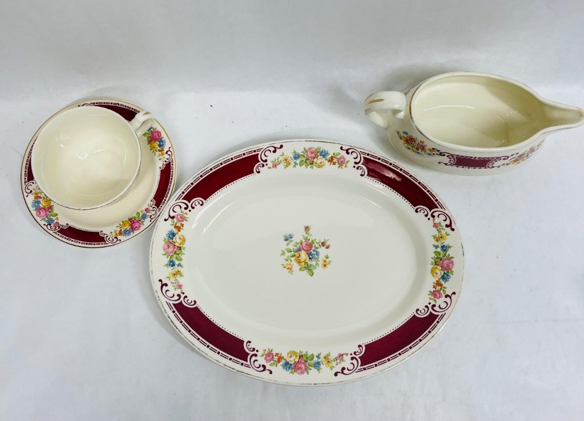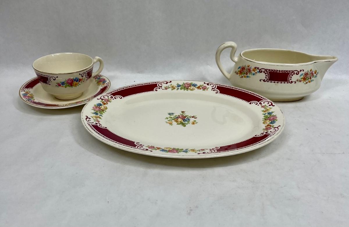 Homer Laughlin Ceramic Pottery Burgundy border with flowers A43N6 Made in USA