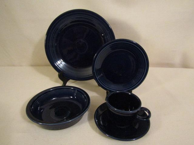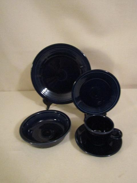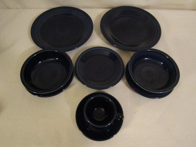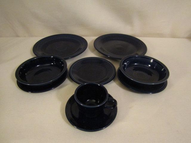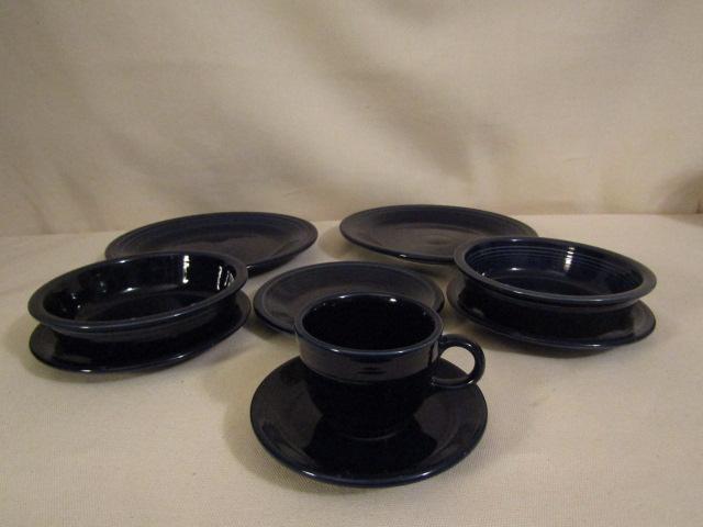 Homer Laughlin Fiestaware- 2 Dinner Plates, 3 Salad Plates, 2 Medium Bowls, Cup & Saucer, Color is possibly Cobalt Blue.