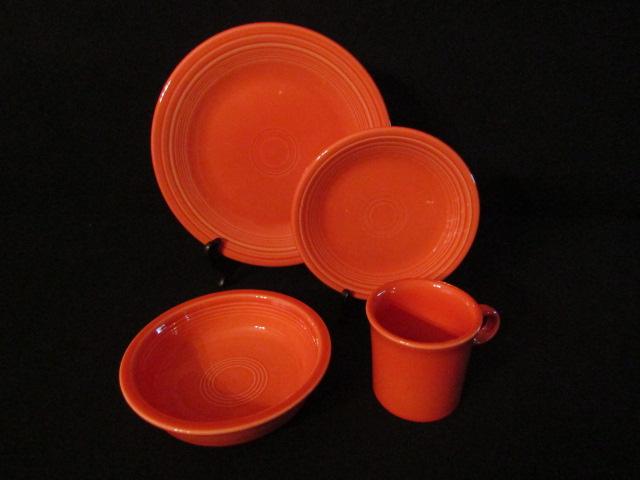 Homer Laughlin Fiestaware- Dinner Plate, Salad Plate, Medium Bowl, and Mug. Possibly color is Poppy.