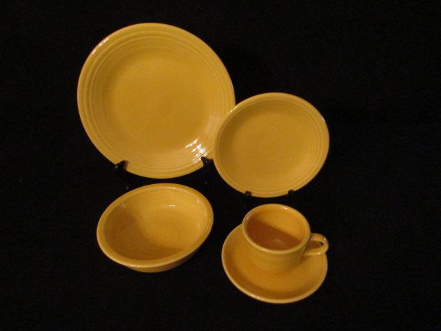 Homer Laughlin Fiestaware- Dinner Plate, Salad Plate, Medium Bowl, Cup & Saucer. Color is possibly Daffodil.