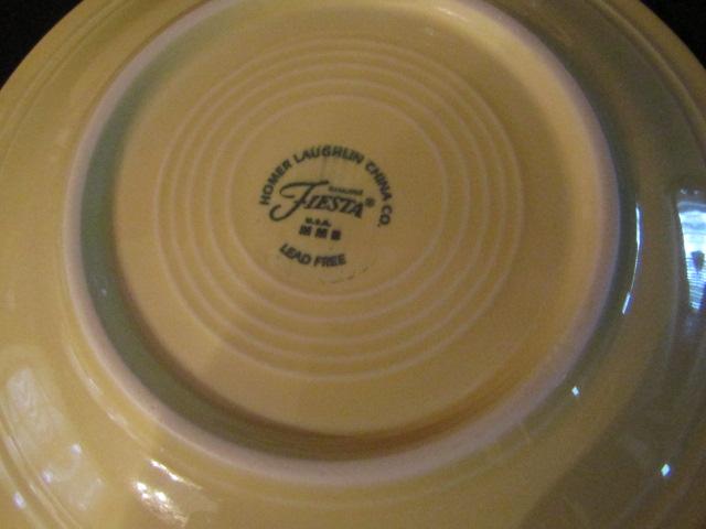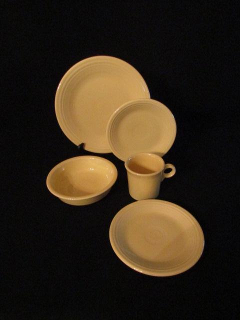 Homer Laughlin Fiestaware-2 Dinner Plates, Salad Plate, Medium Bowl, Mug. Color is possibly Sunflower.