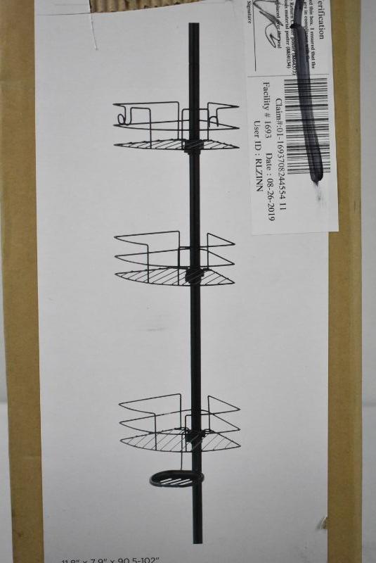 HomeZone 3 Tier Extension Pole Corner Shower Caddy with Wire Shelves - Oil Rubbed Bronze - New
