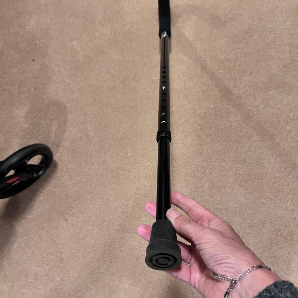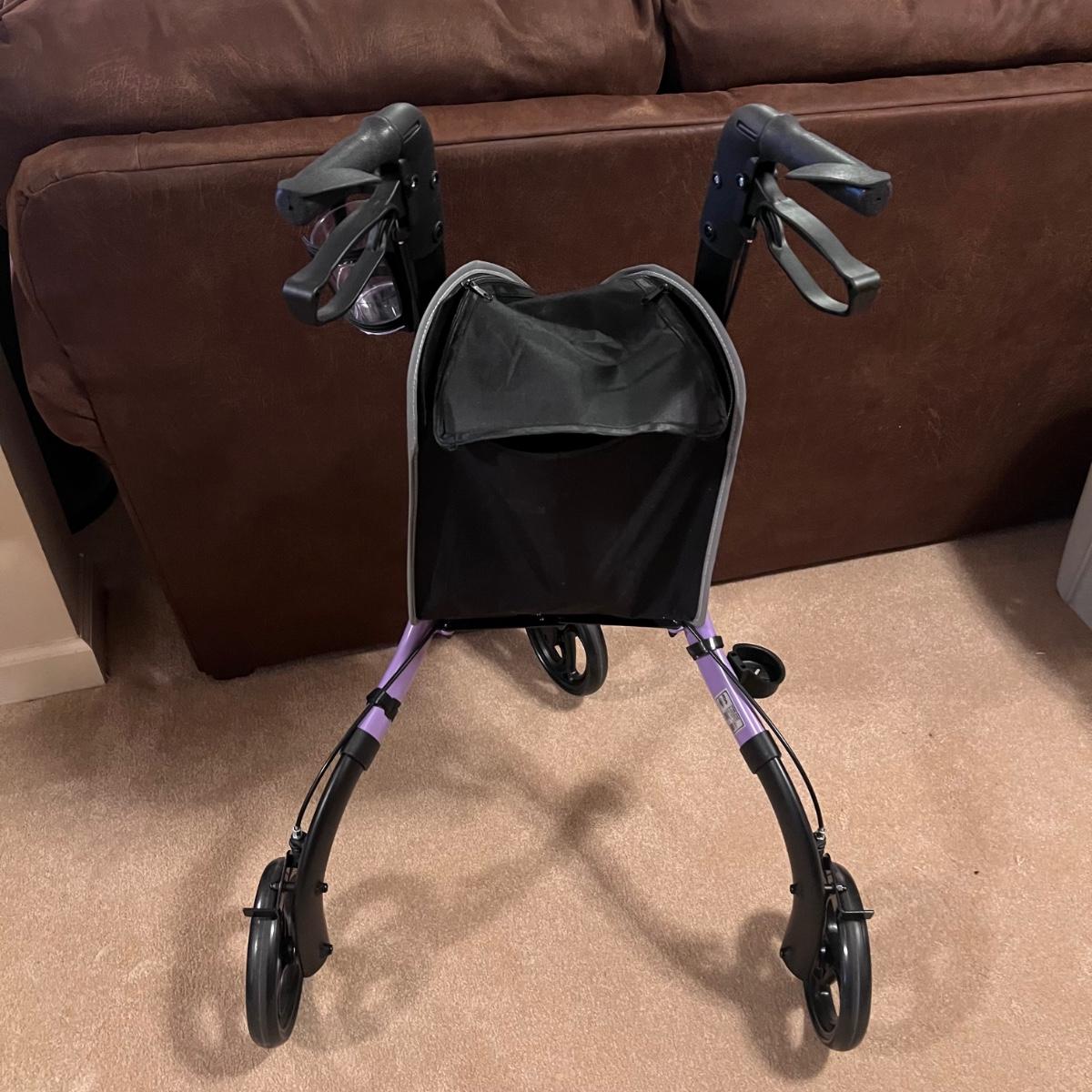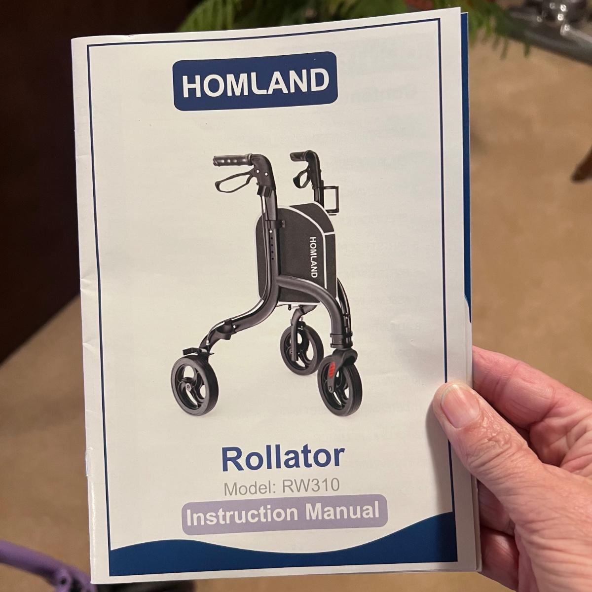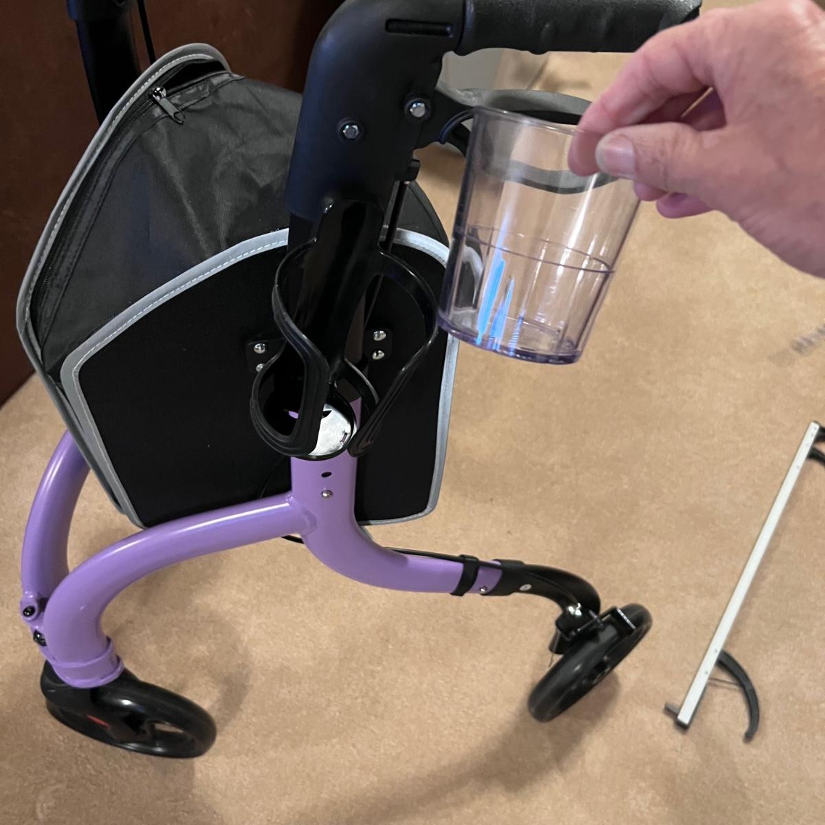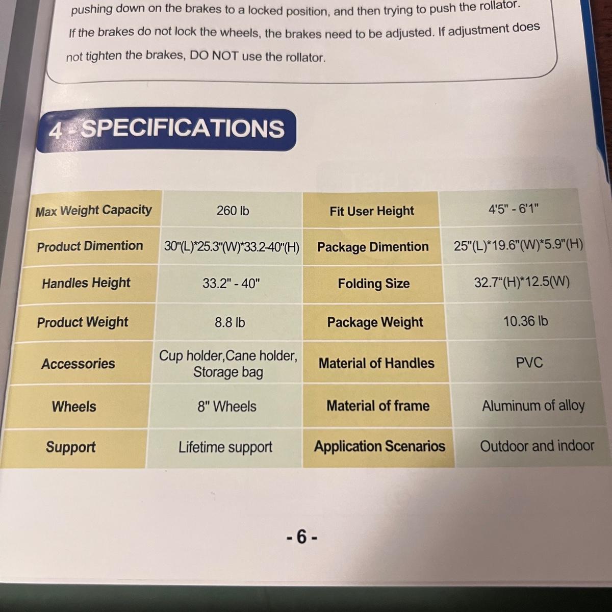 Homland Rolland Walker comes with a plastic cup and storage. Walking stick and grabber tool also included. See pic for dimensions for the walker.