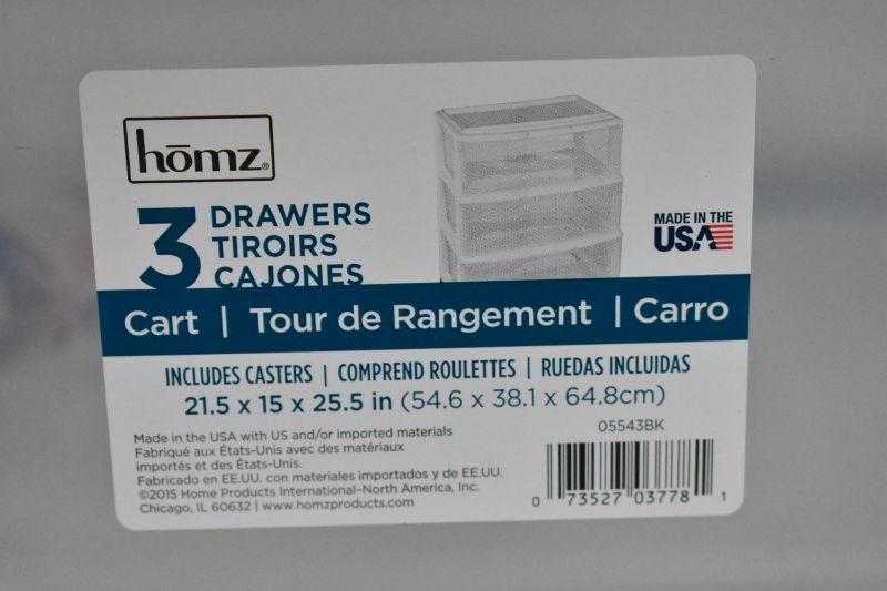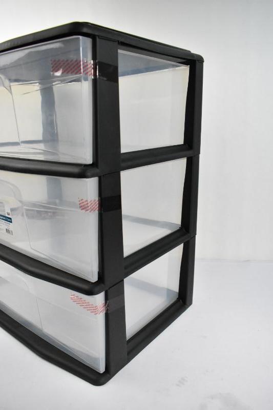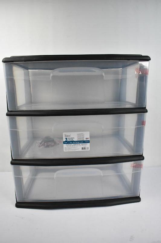 Homz 3 Drawer Cart with Casters, Clear & Black - Damage on Top Left Side