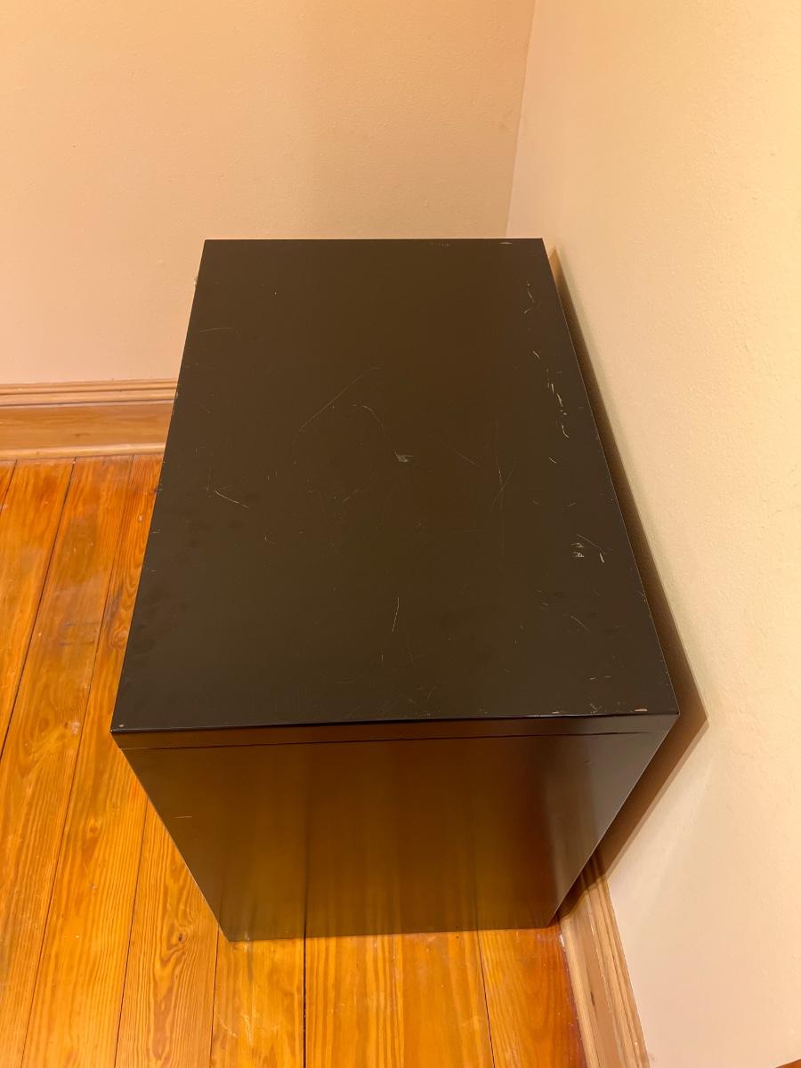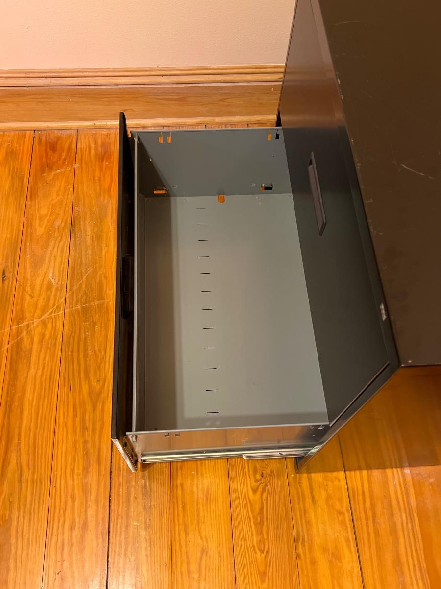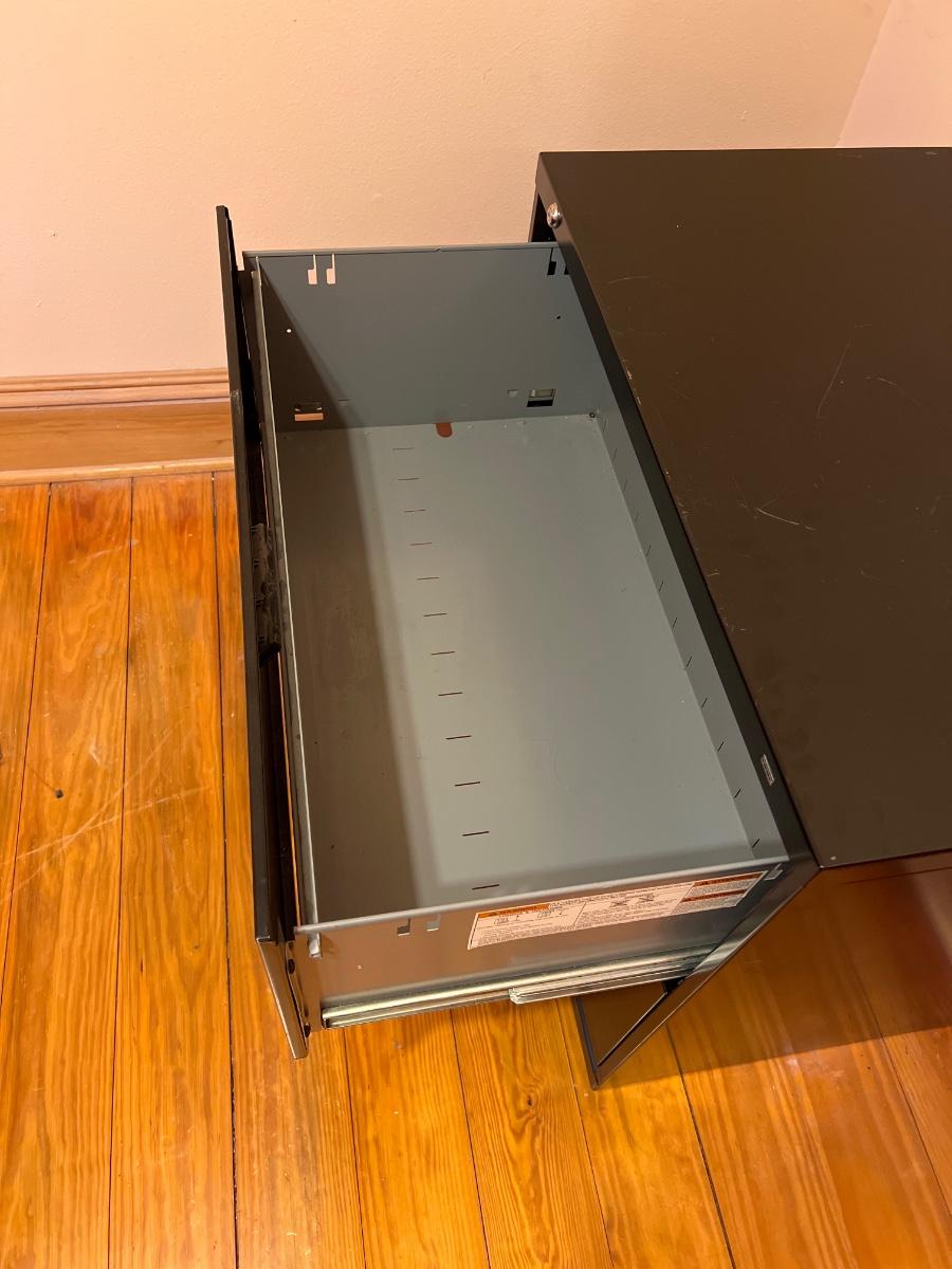 Drawers slide in and out easily. No Key ~ Normal Wear & Tear ~ 28.5” H x 30” W x 19.5” D