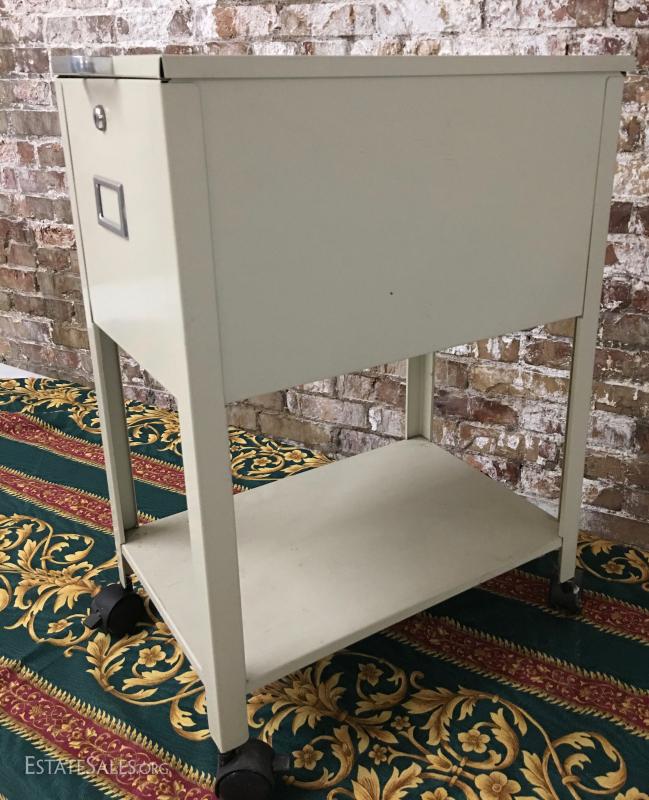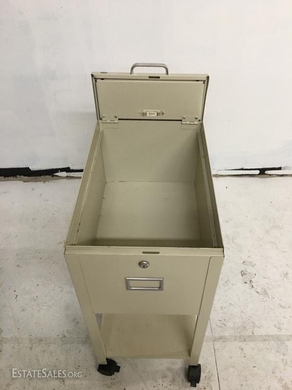 Good condition, measures 28"x13"x21", metal will accommodate standard size handing file folders. No key.