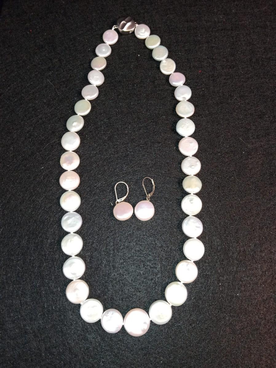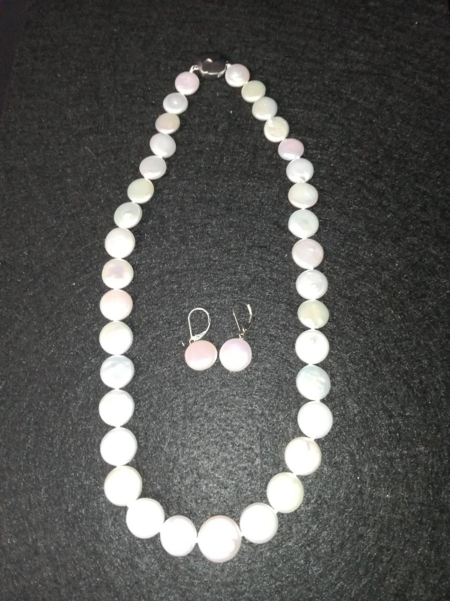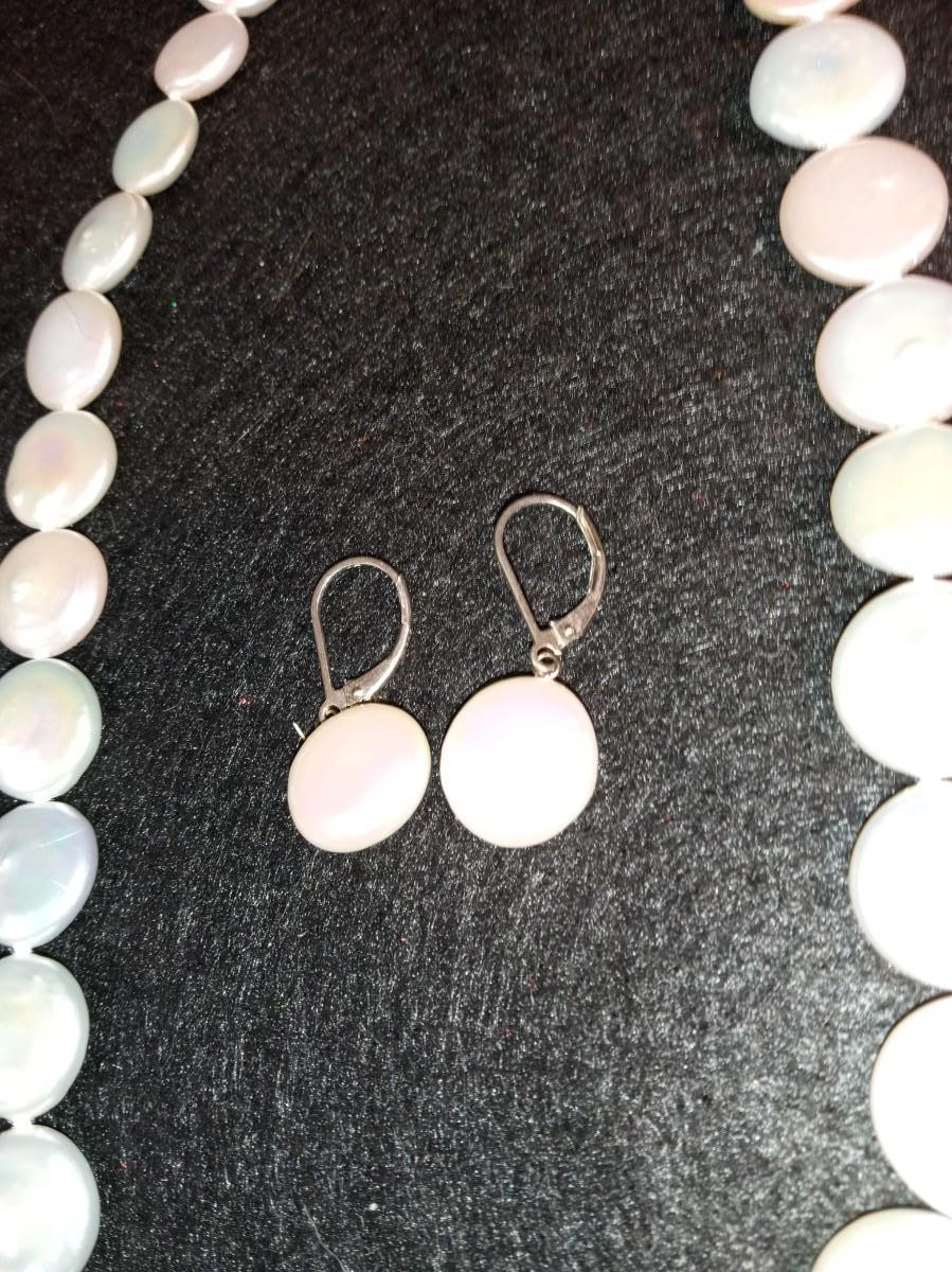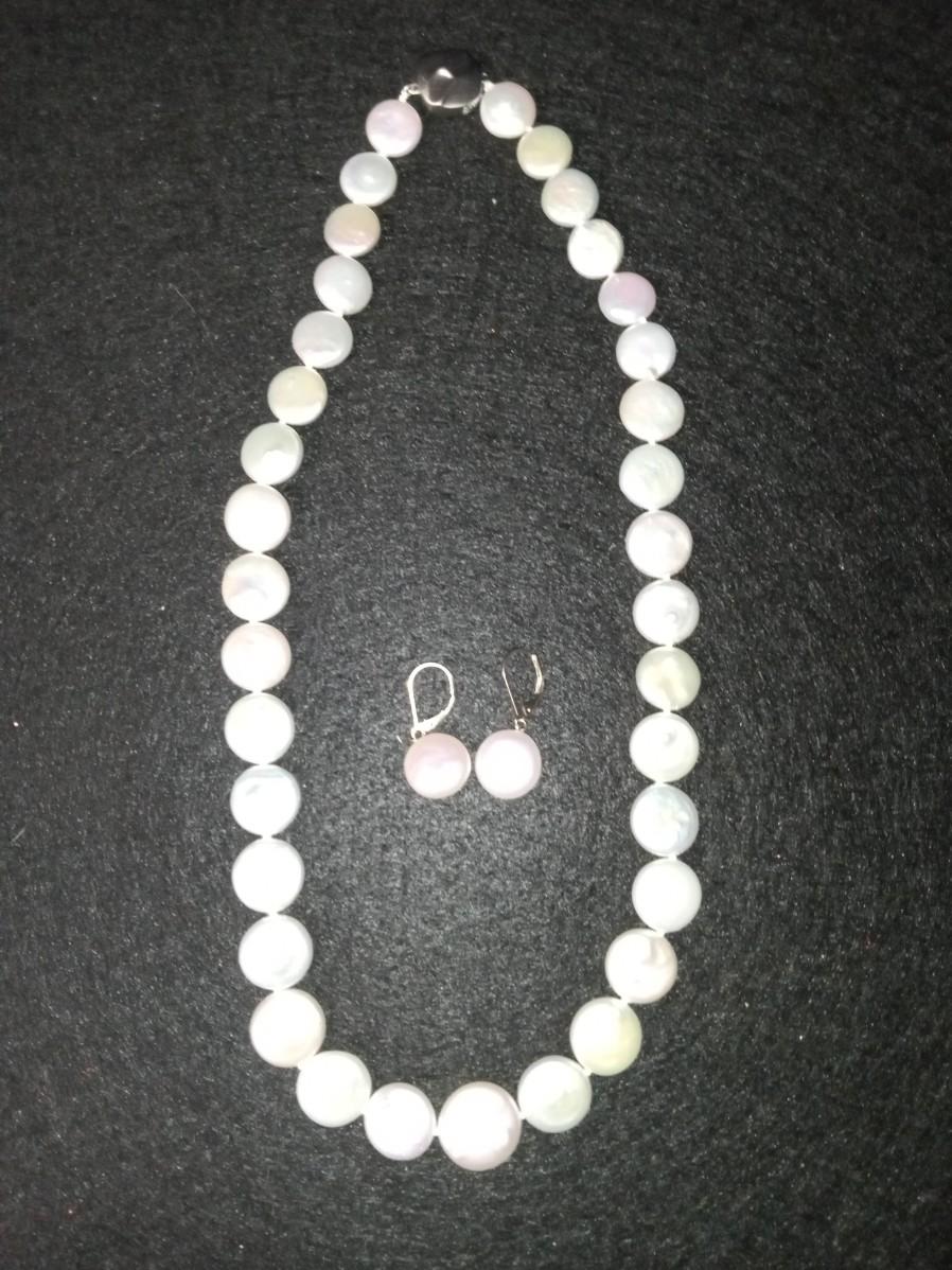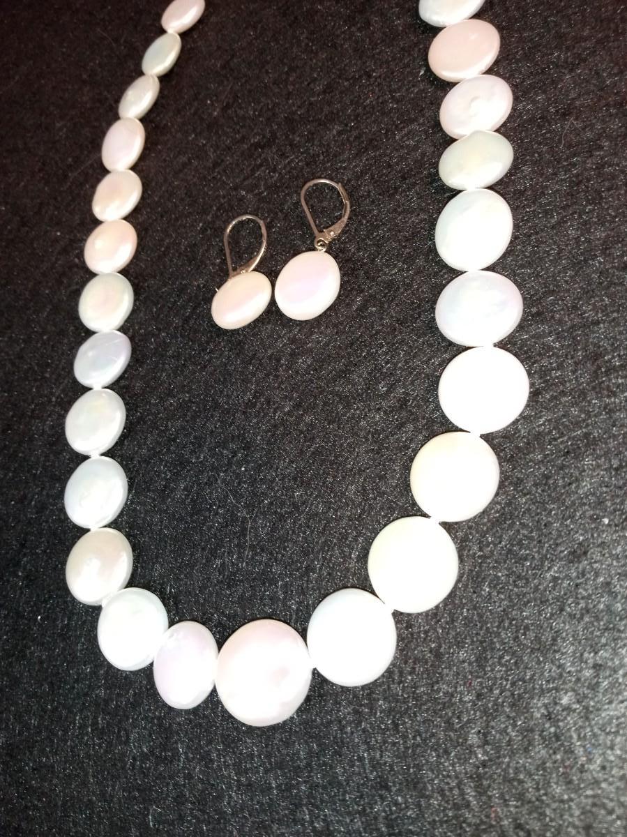 HONARA GENUINE PEARL DISC NECKLACE AND EARRINGS