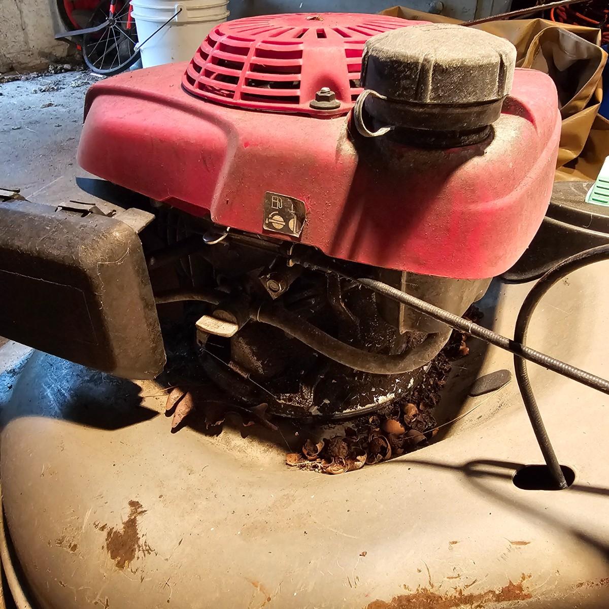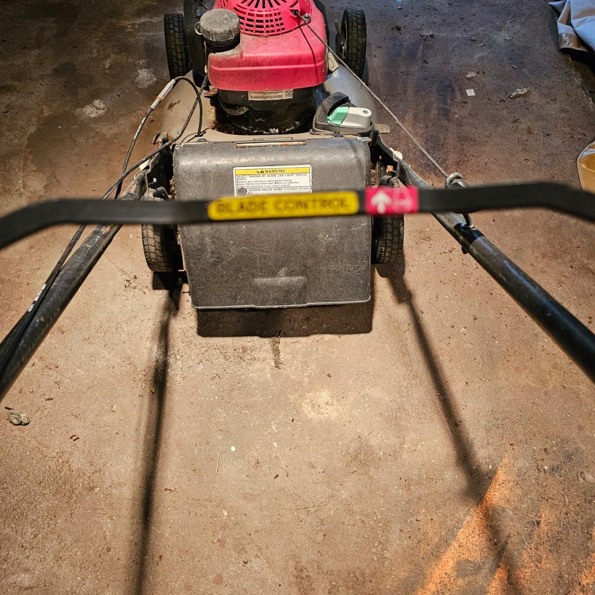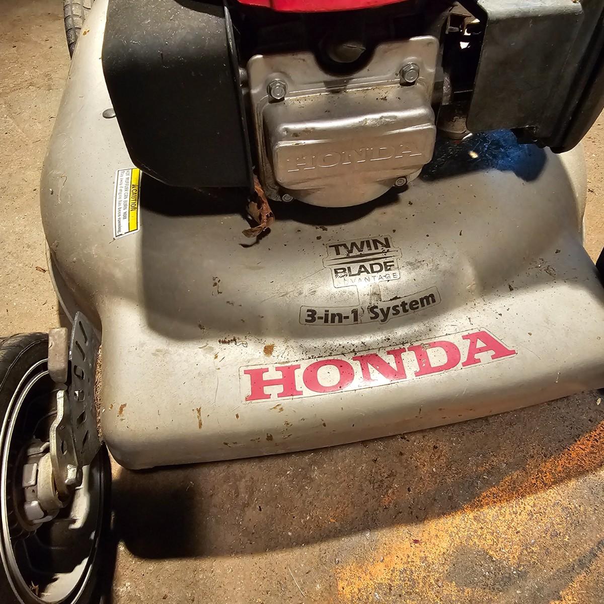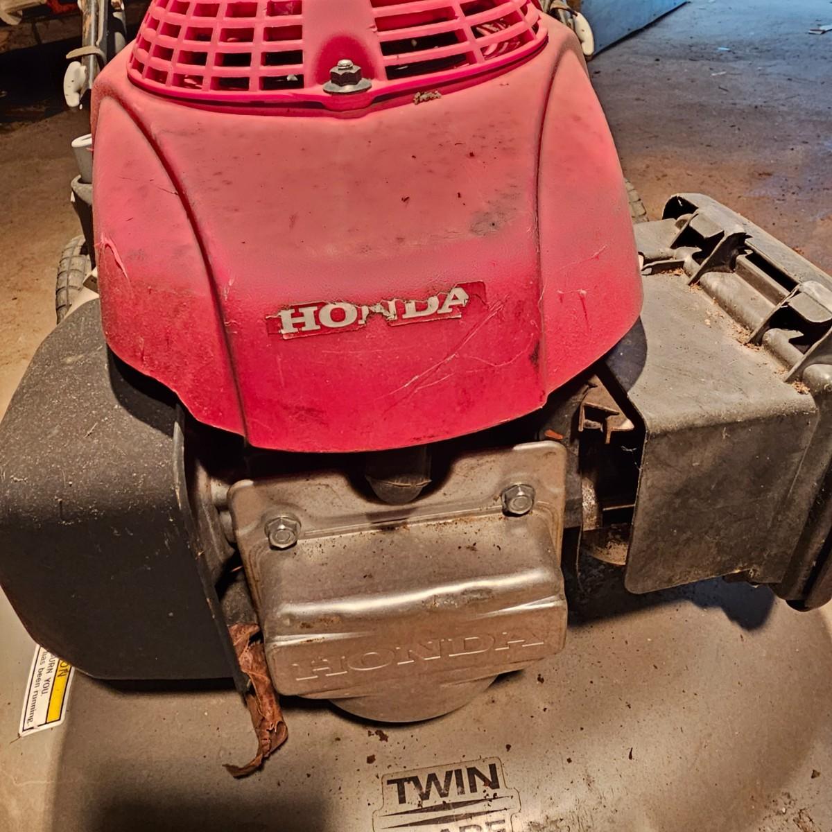 Honda mower with 160cc engine, 21"cut and self-propel drive. Has grass deflector on rear, adjustable speed on drive. Mower turned over when starter cable pulled but appears to need gas. Mower measures 22" x 65" x 37"H. See photos for details. Local pickup only.