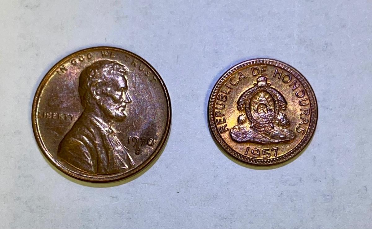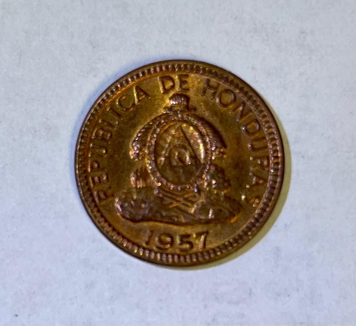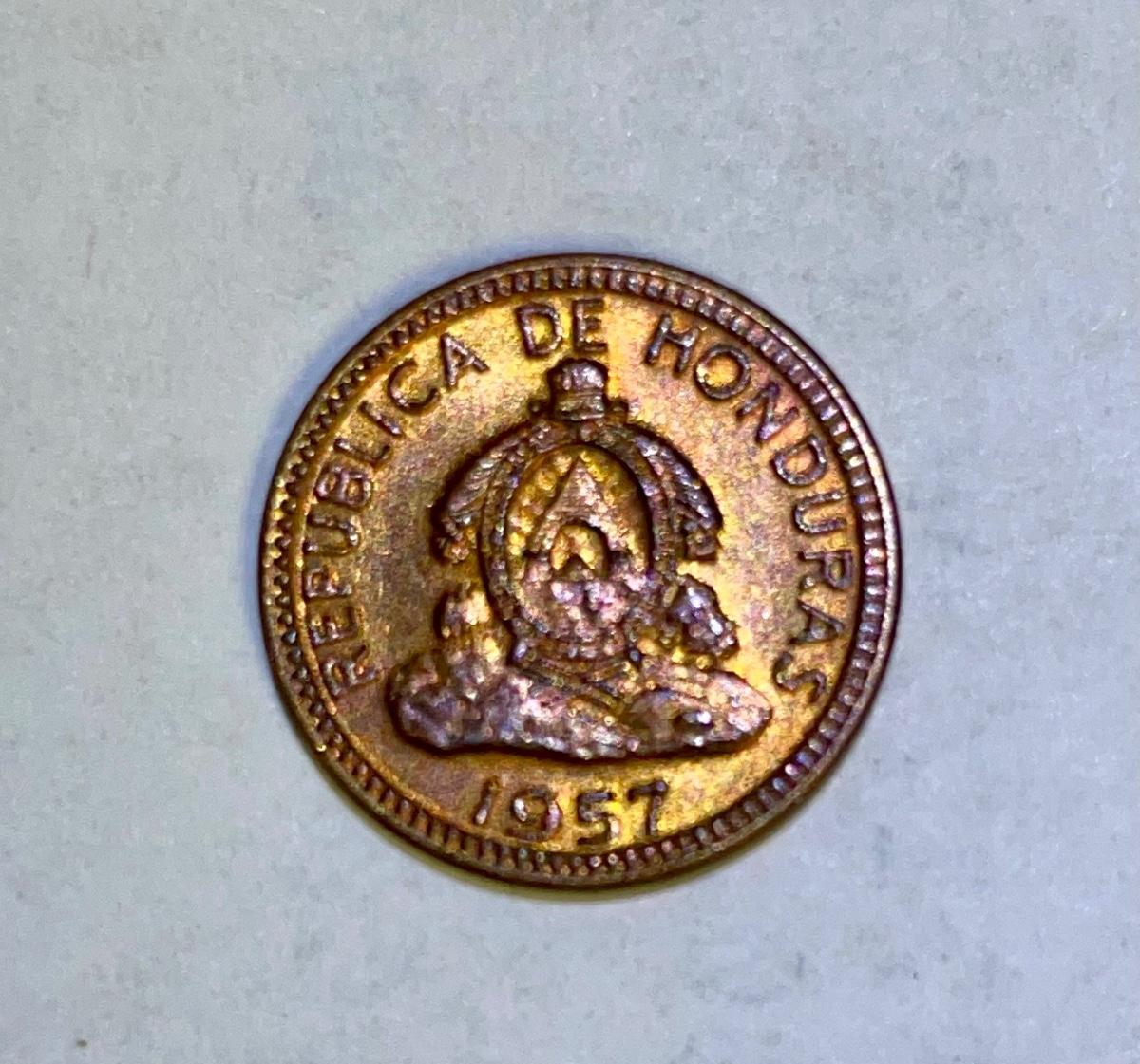 Honduras uses the Lempira as their main monetary unit. This coin is 1 centavo of a Lempira. Good condition, shows some tarnish due to handling. Somewhat smaller than a US penny.