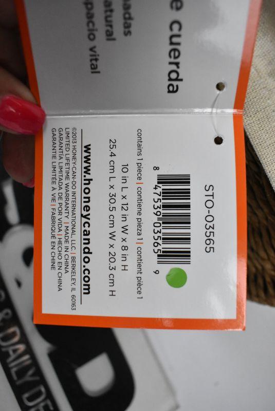 Honey Can Do Brown Parchment Cord Basket with Liner 10" x 12" x 8" - New