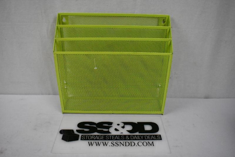 Honey Can Do Steel Mesh Vertical File Sorter with 3 Bins, Lime. Small Scuffs