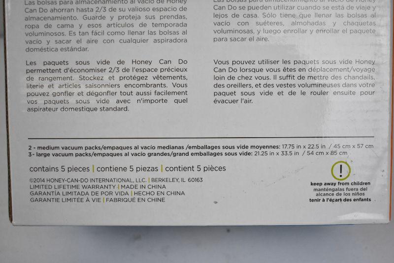 Honey Can Do Storage Combo Vacuum Storage Bags, Clear (Pack of 5) - New