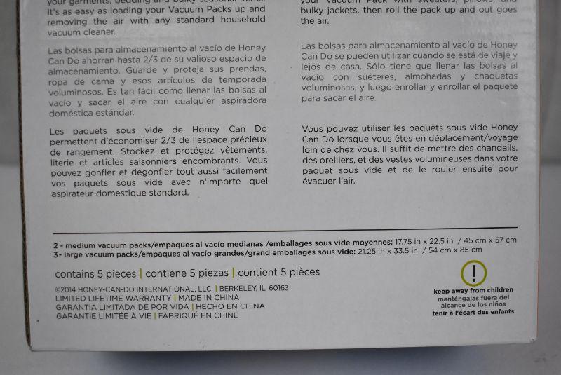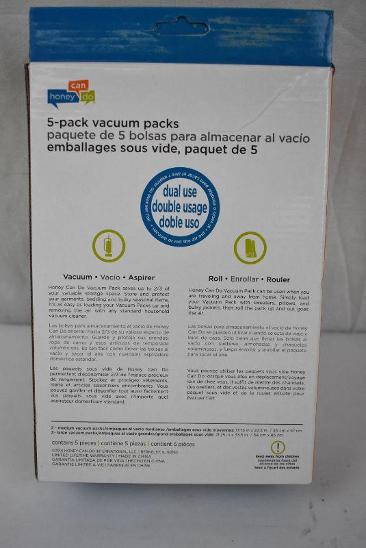 Honey Can Do Storage Combo Vacuum Storage Bags, Clear (Pack of 5) - New