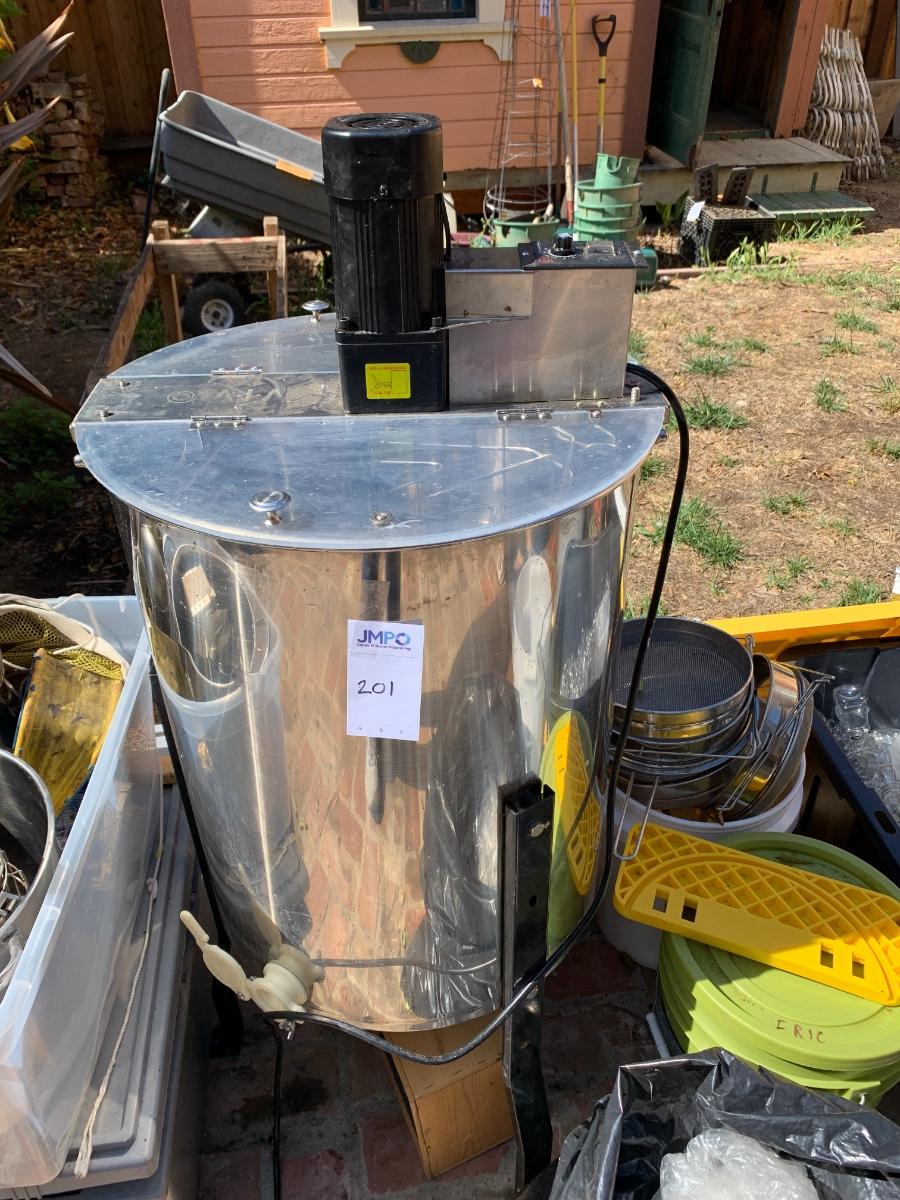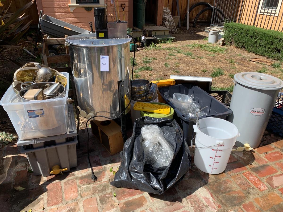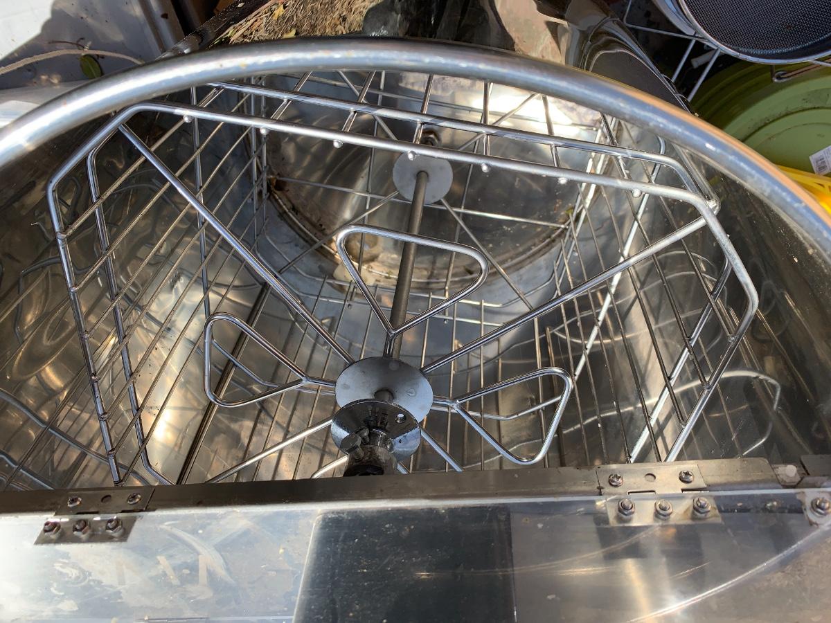 Automatic stainless steel centrifuge, clean, works. Manual plastic centrifuge, clean, works. A couple hundred clean honey bear bottles, no caps. Other equipment shown is clean and in good repair.