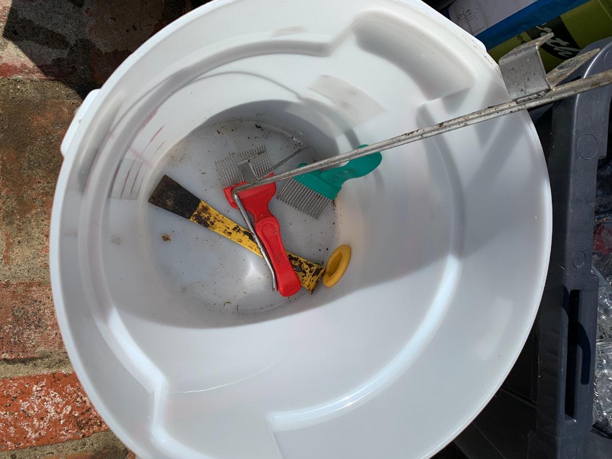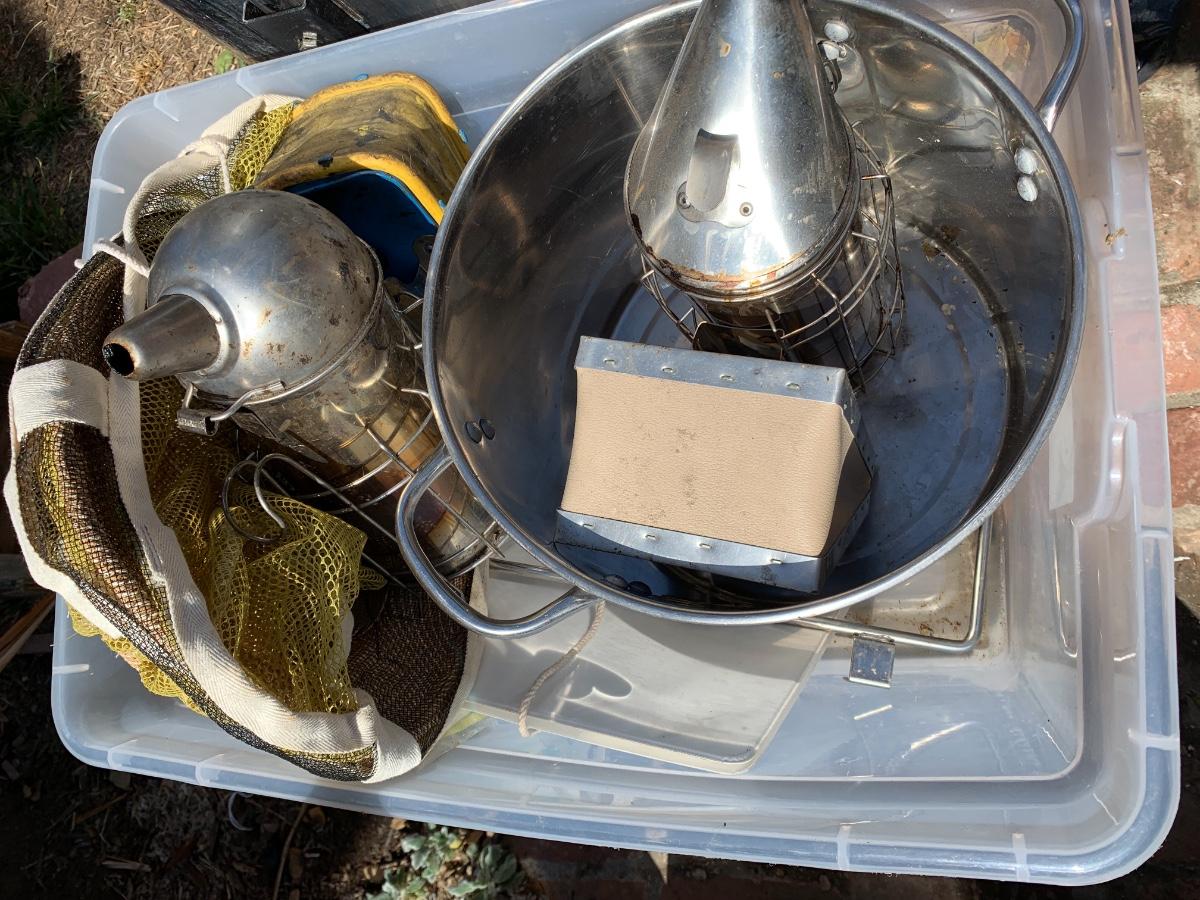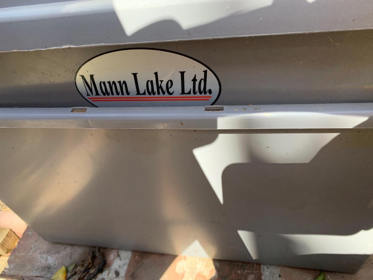 Automatic stainless steel centrifuge, clean, works. Manual plastic centrifuge, clean, works. A couple hundred clean honey bear bottles, no caps. Other equipment shown is clean and in good repair.