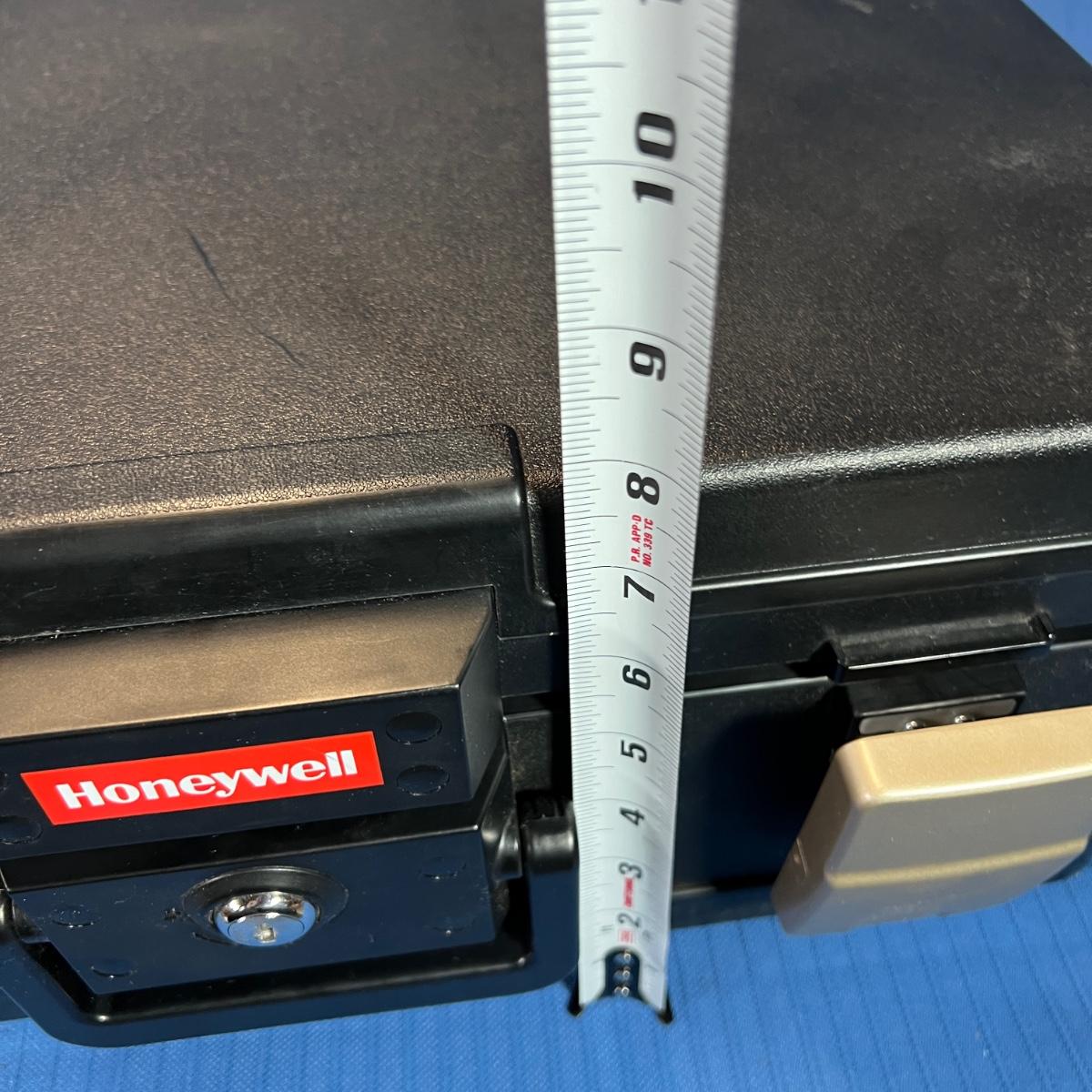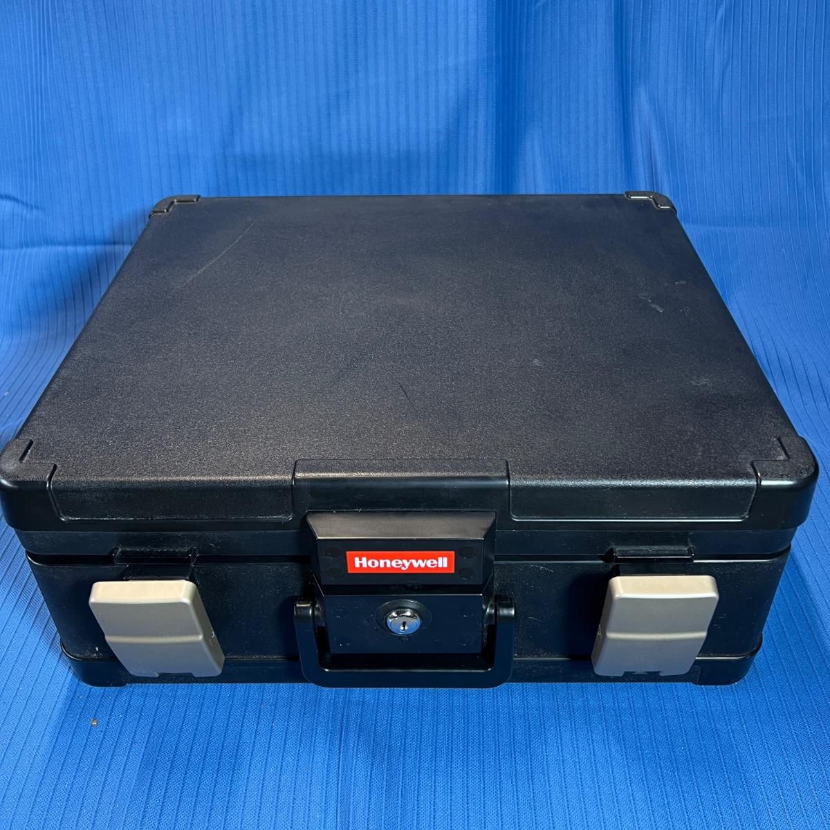 Fireproof waterproof safe. This does not have the key but one can be ordered on the Honeywell website.