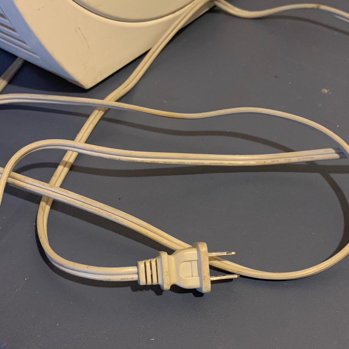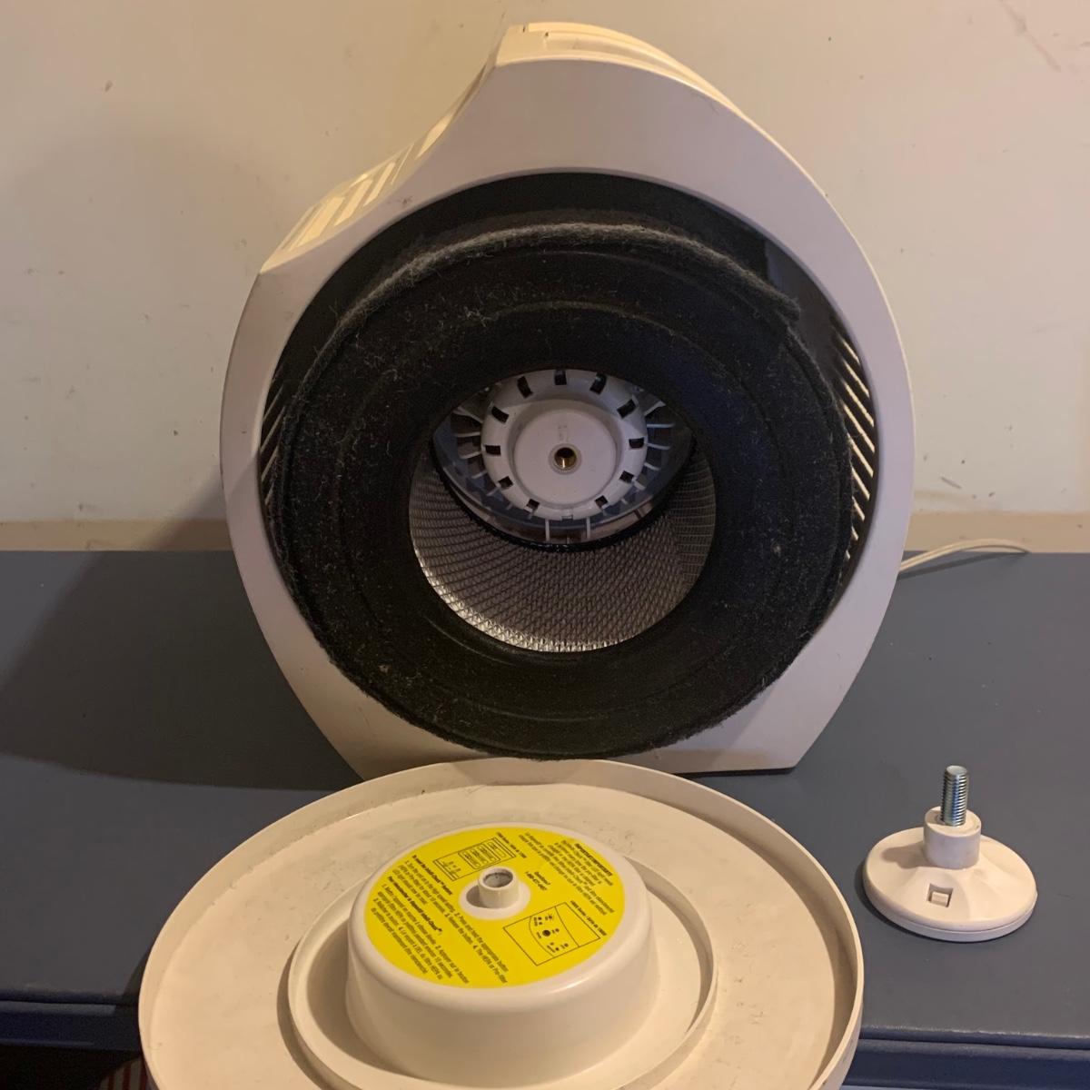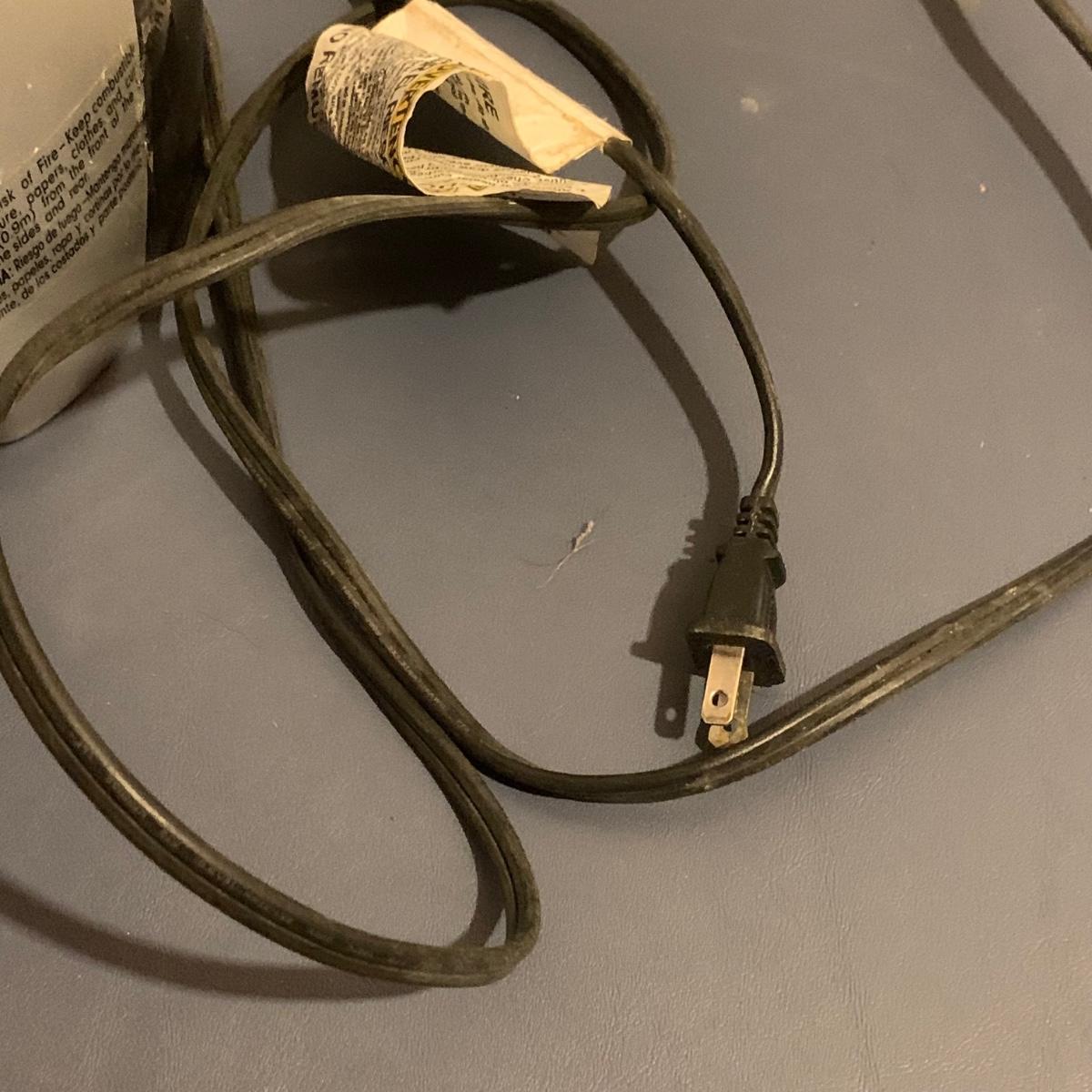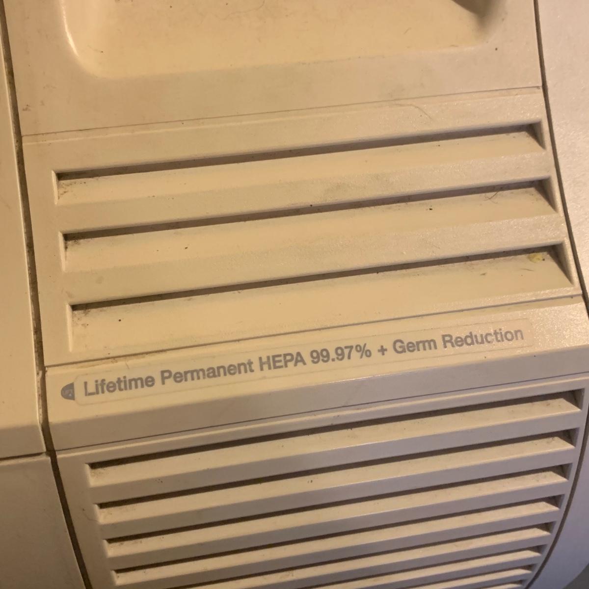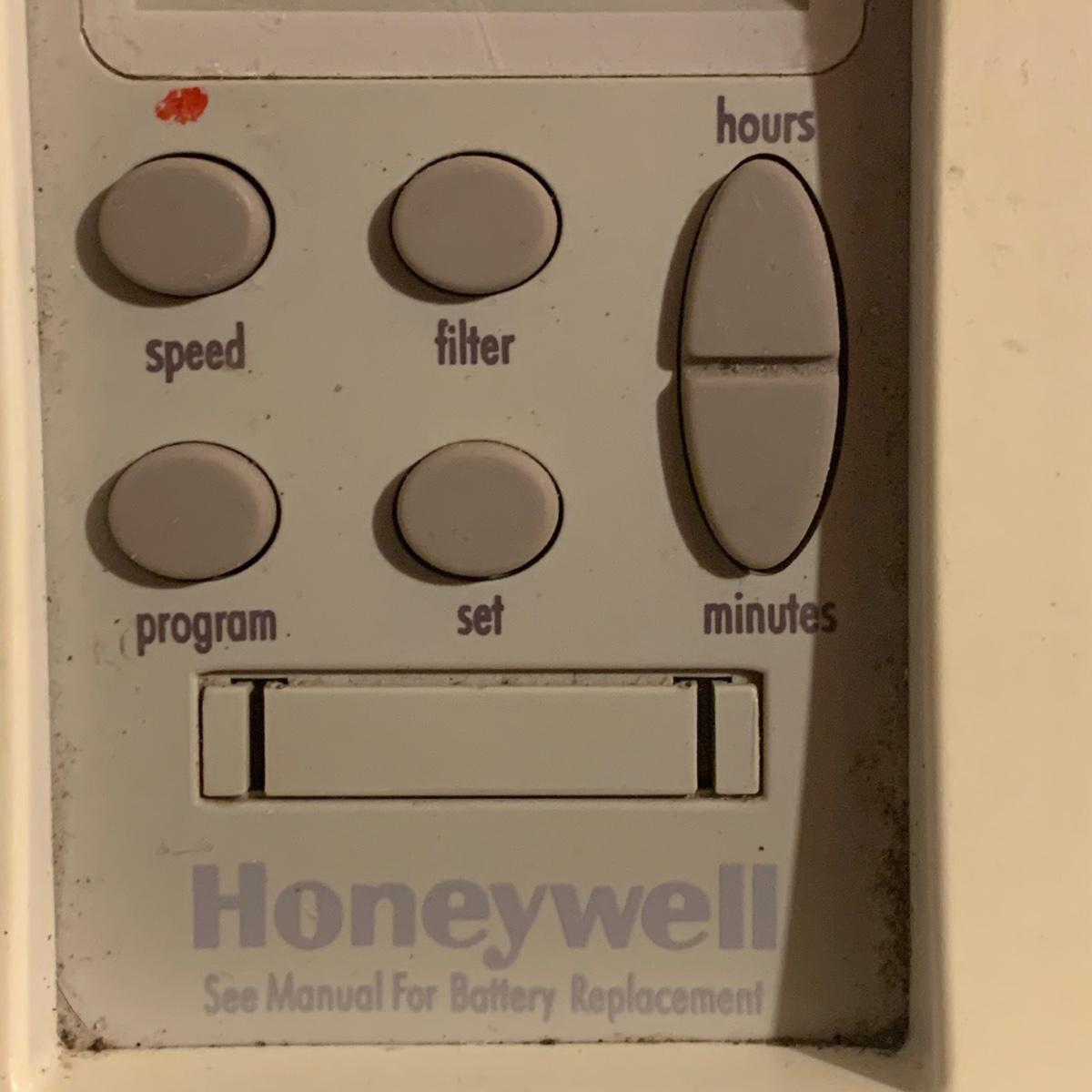 Honeywell HEPA air cleaner is approximately 10.5” x 13.5” x 15”H. It has some surface dust that will wipe off of its plastic shell. Lasko ceramic heater with adjustable thermostat comes with operating manual. It has some tape residue on its surface. Both items powered on when plugged in.