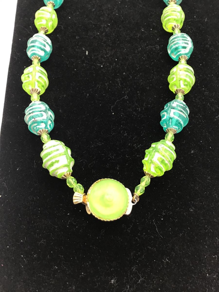 Hong Kong green and turquoise beaded necklace