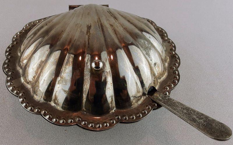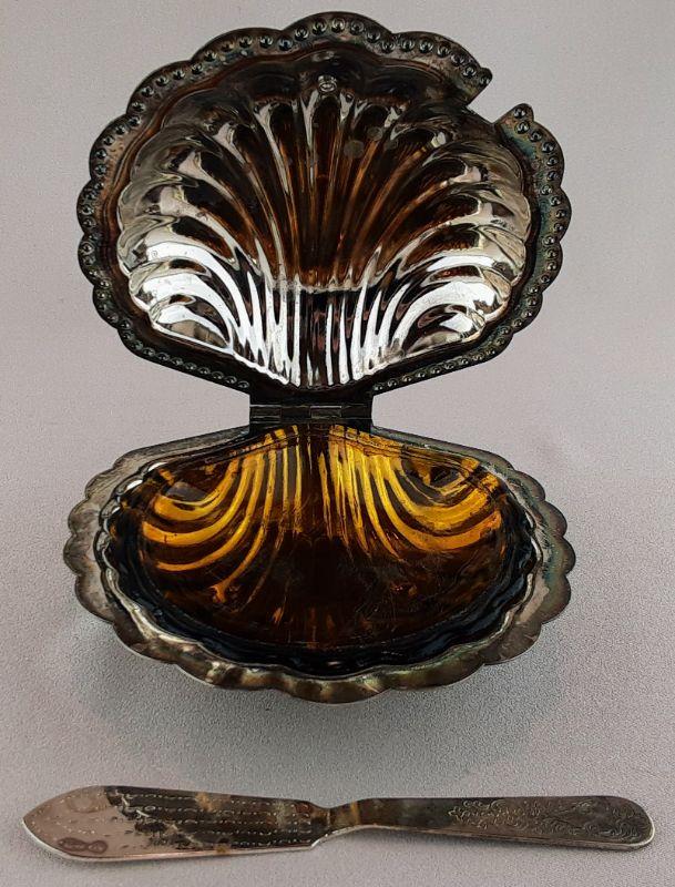 Amber colored glass insert condiment server. Measures 4.75x4.5in.