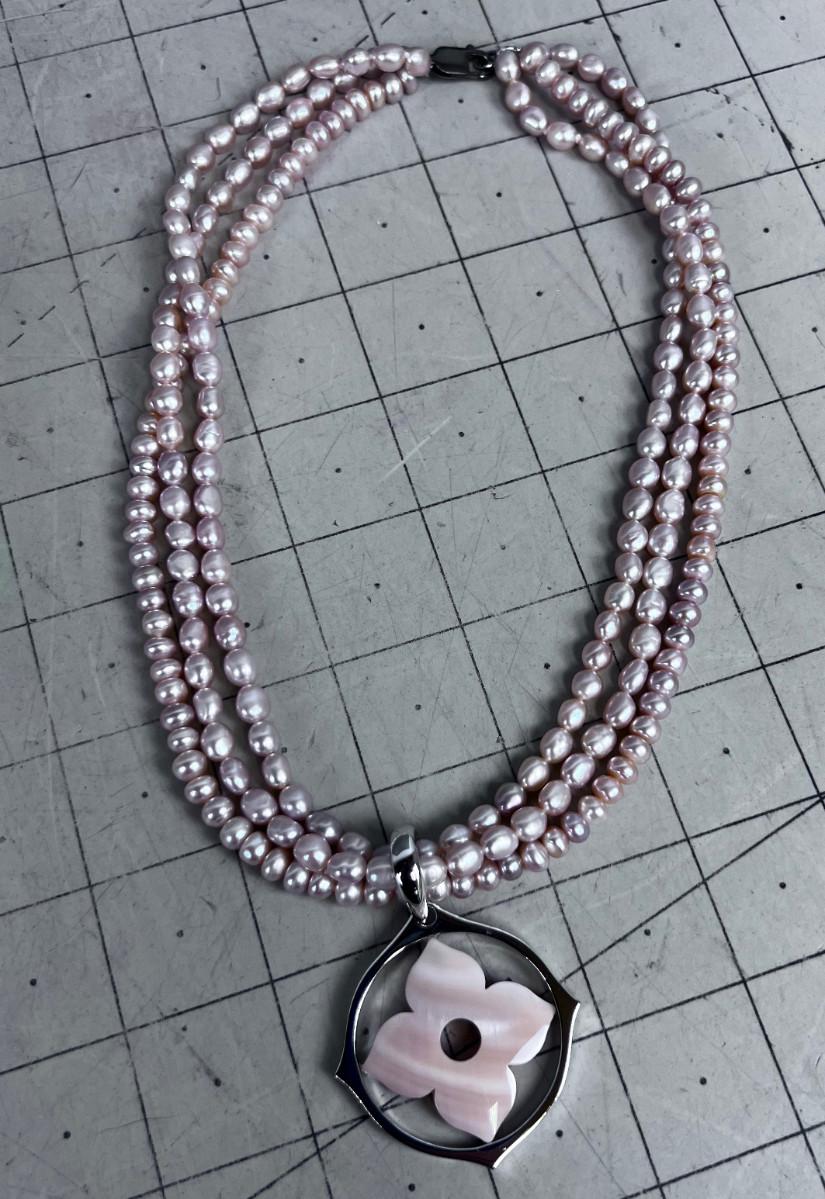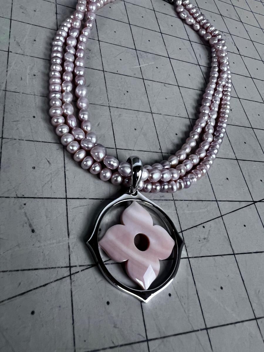 HONORA PINK Fresh Water Pink Pearl Necklace with Flower Pendant