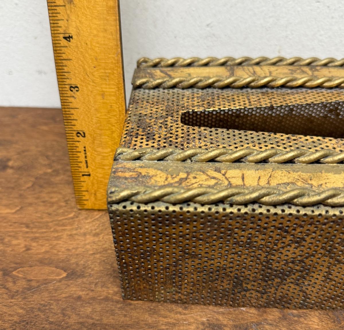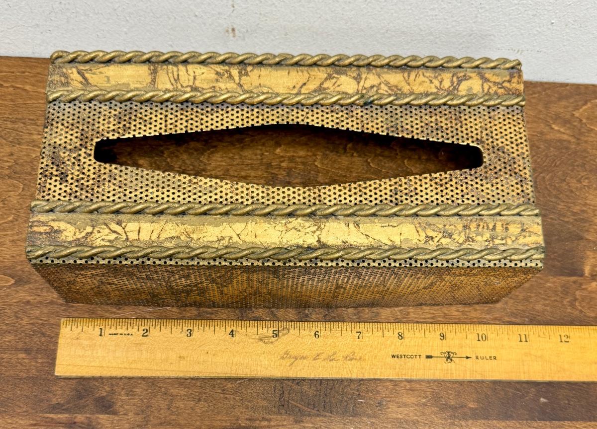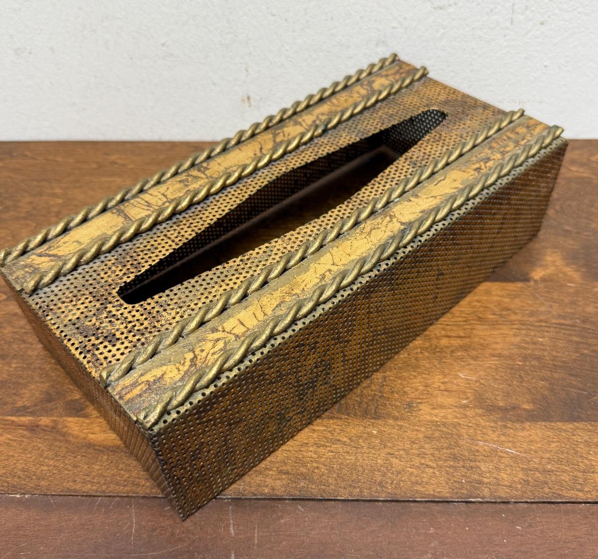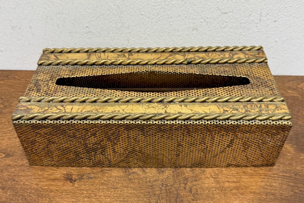 Vintage Hollywood Regency Gold Metal Filigree Tissue Box Holder