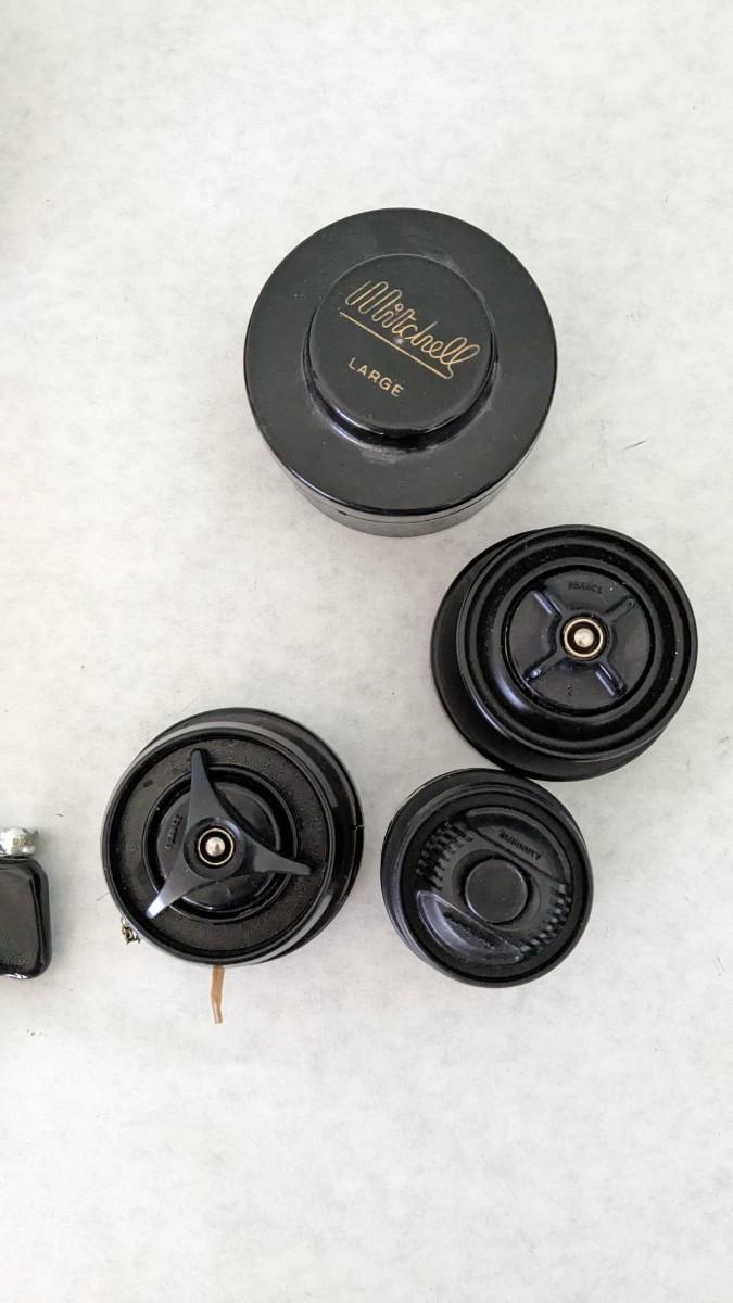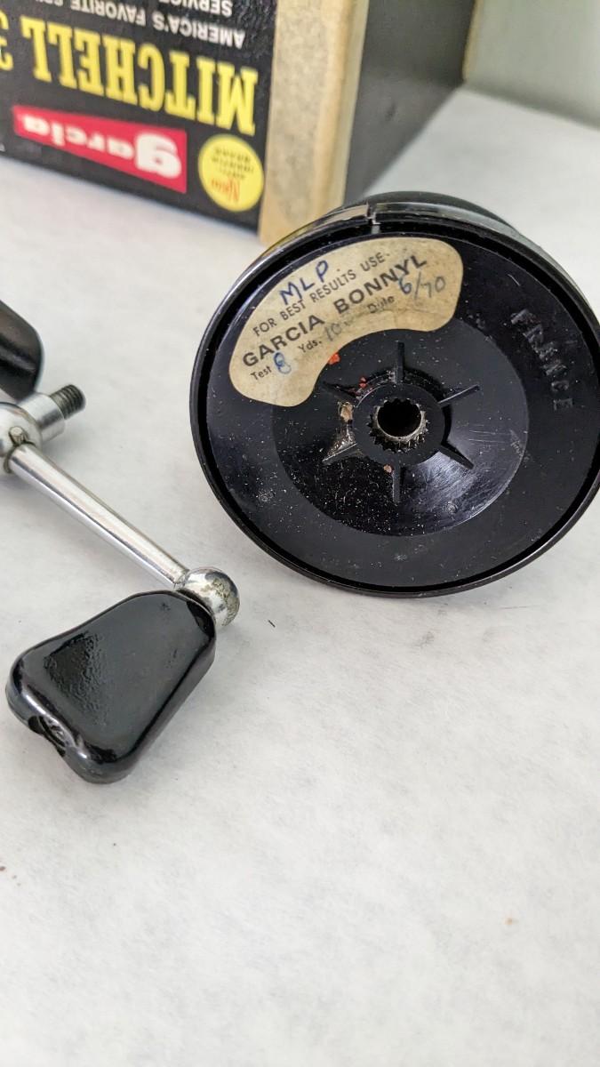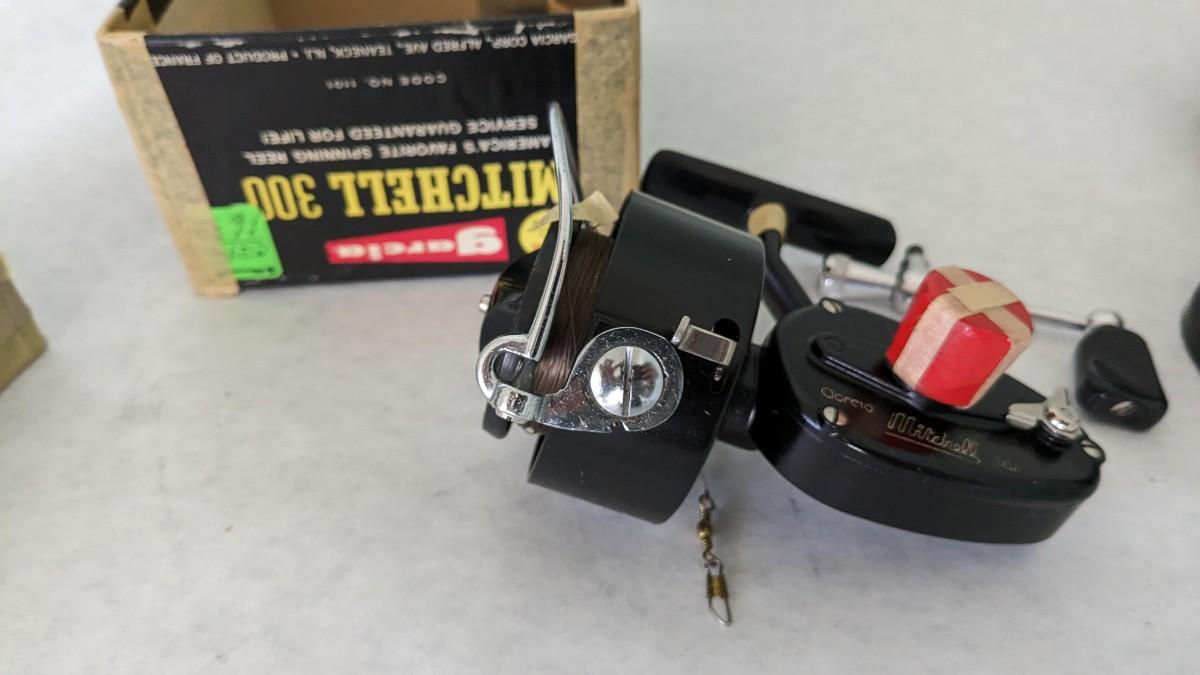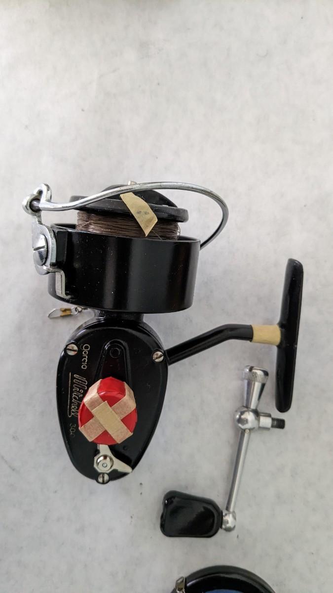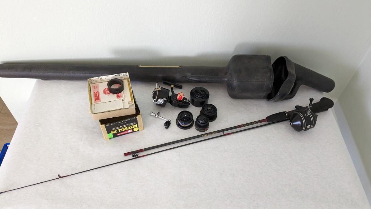 a very nice Mitchell Garcia reel with accessories and box, Berkley Grayfite rod and hardside carrying case and a very nice Zebco 606 reel. All pieces are in very very good condition. Inquire for shipping options. Livingroom