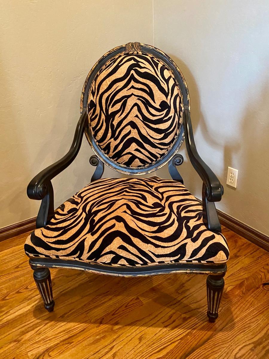 Hooker Zebra Print Chair, Measures 30W x 25D x 43H, Excellent condition