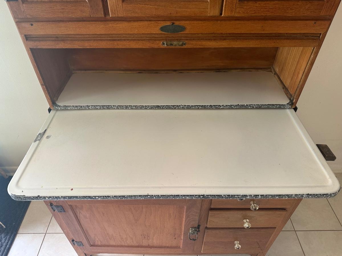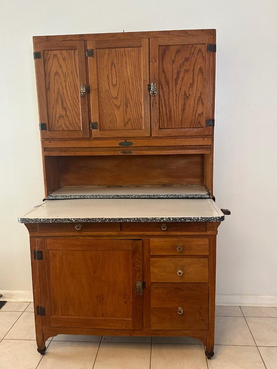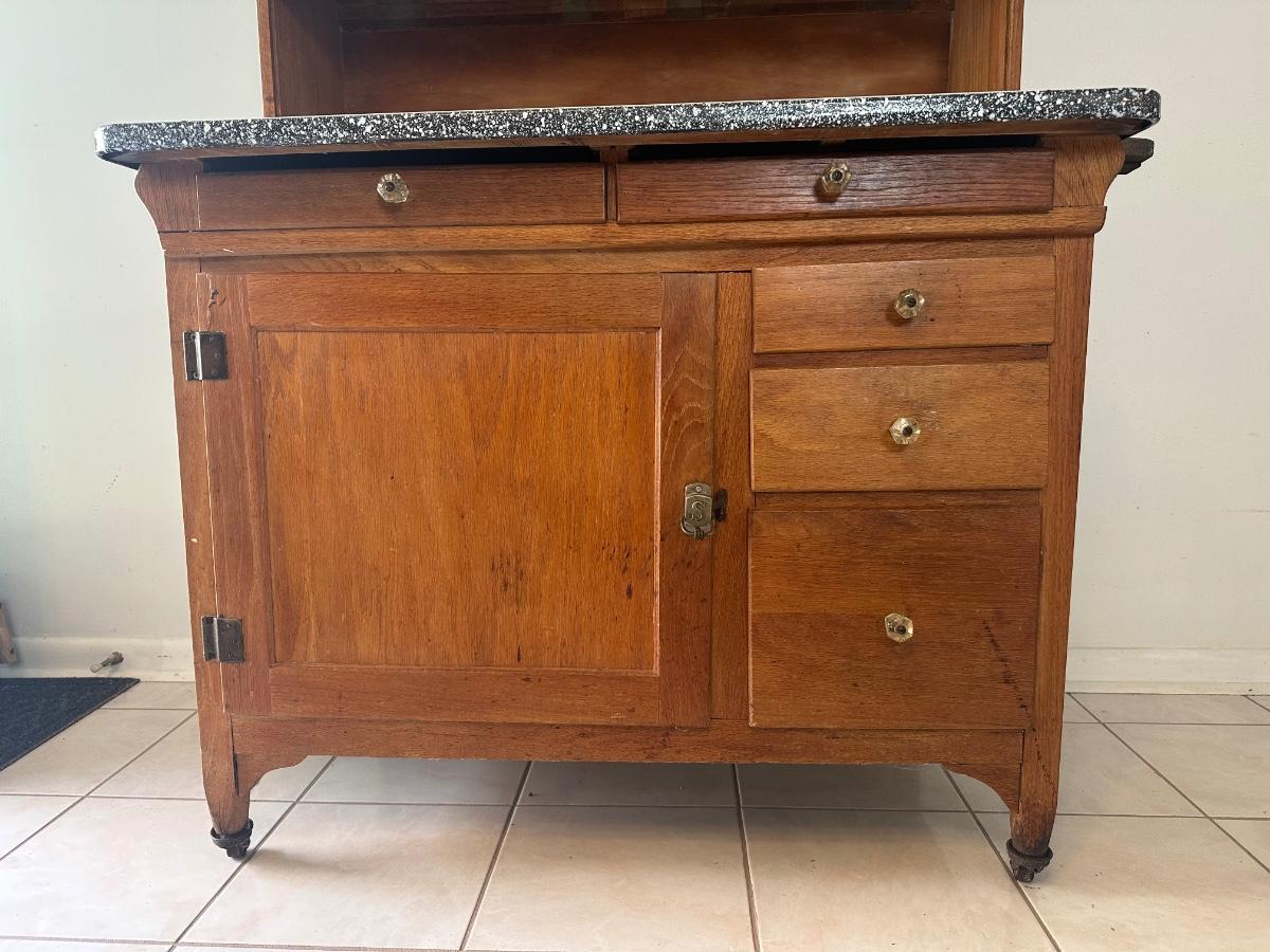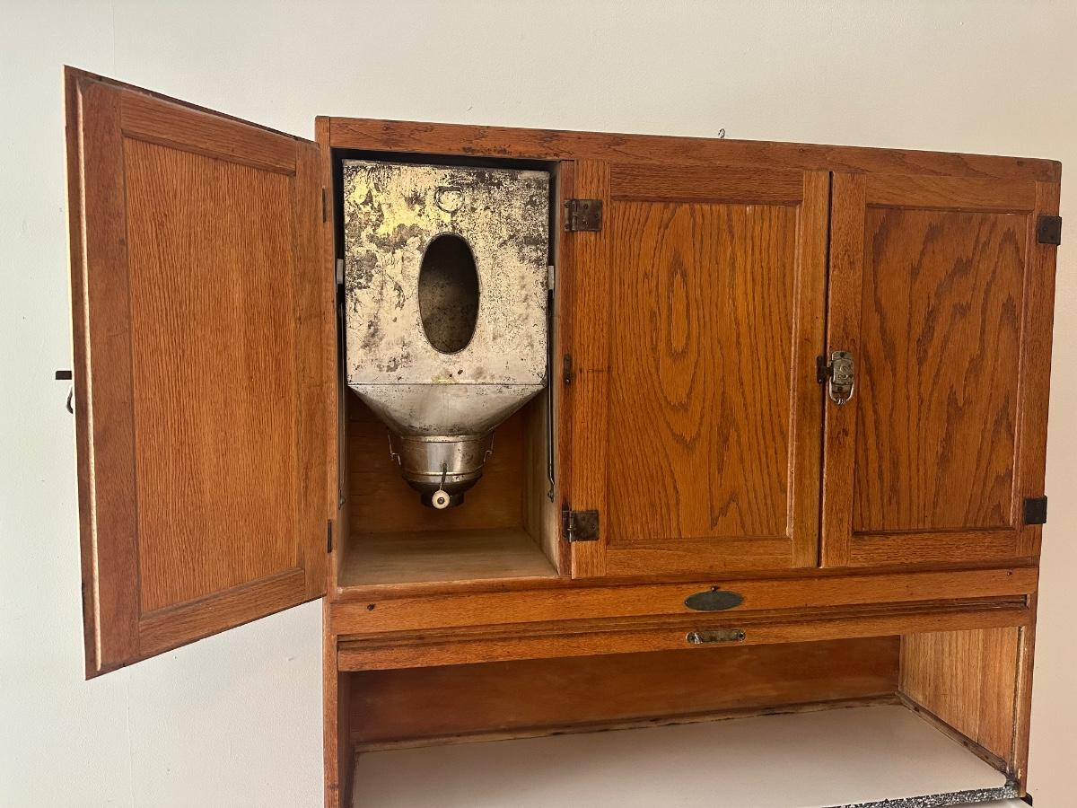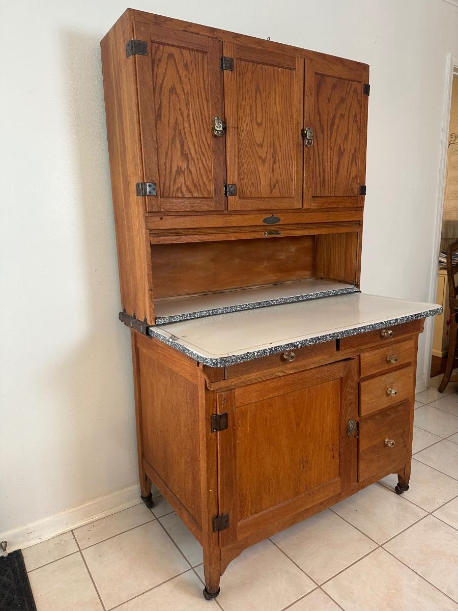1930s Hoosier Oak Kitchen Cabinet with Porcelain Top