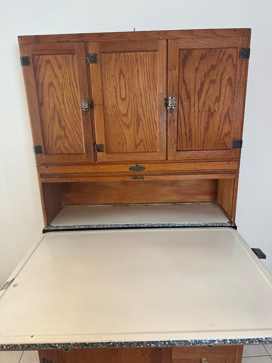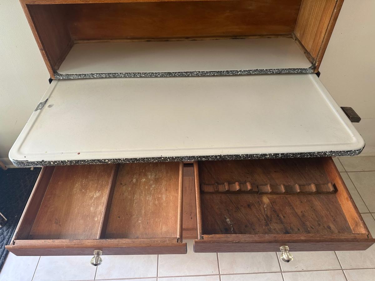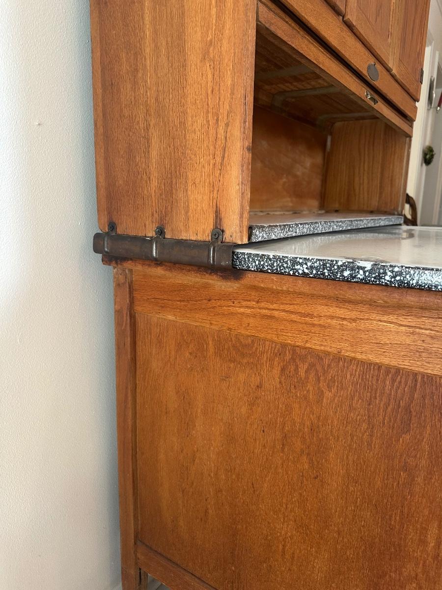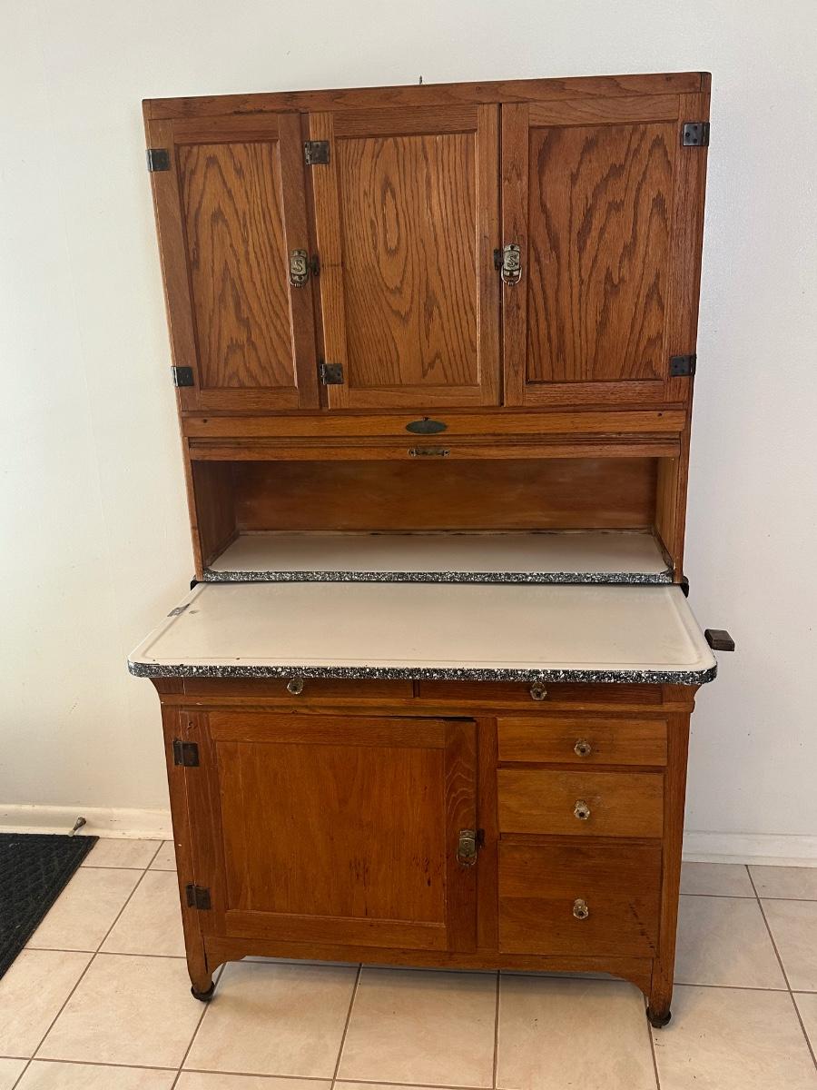 1930s Hoosier Oak Kitchen Cabinet with Porcelain Top