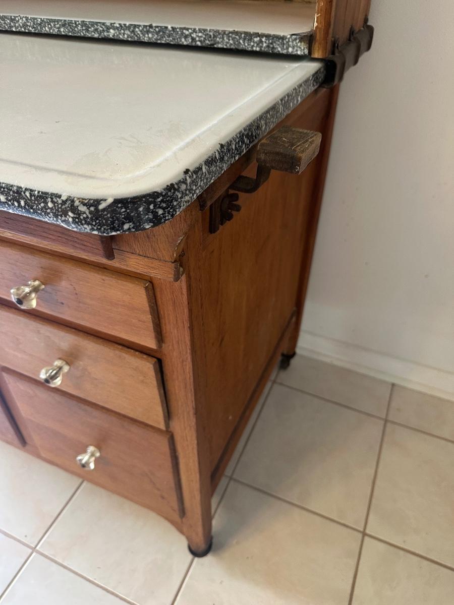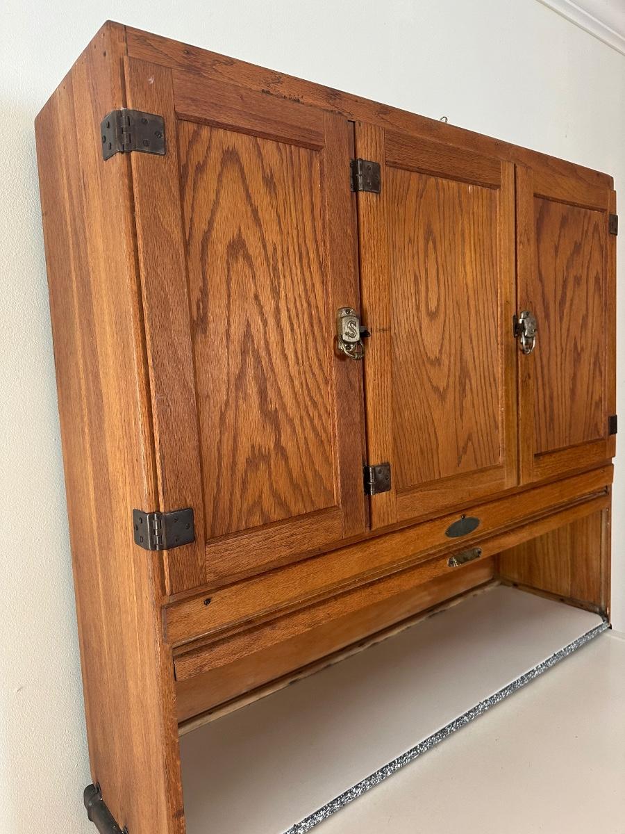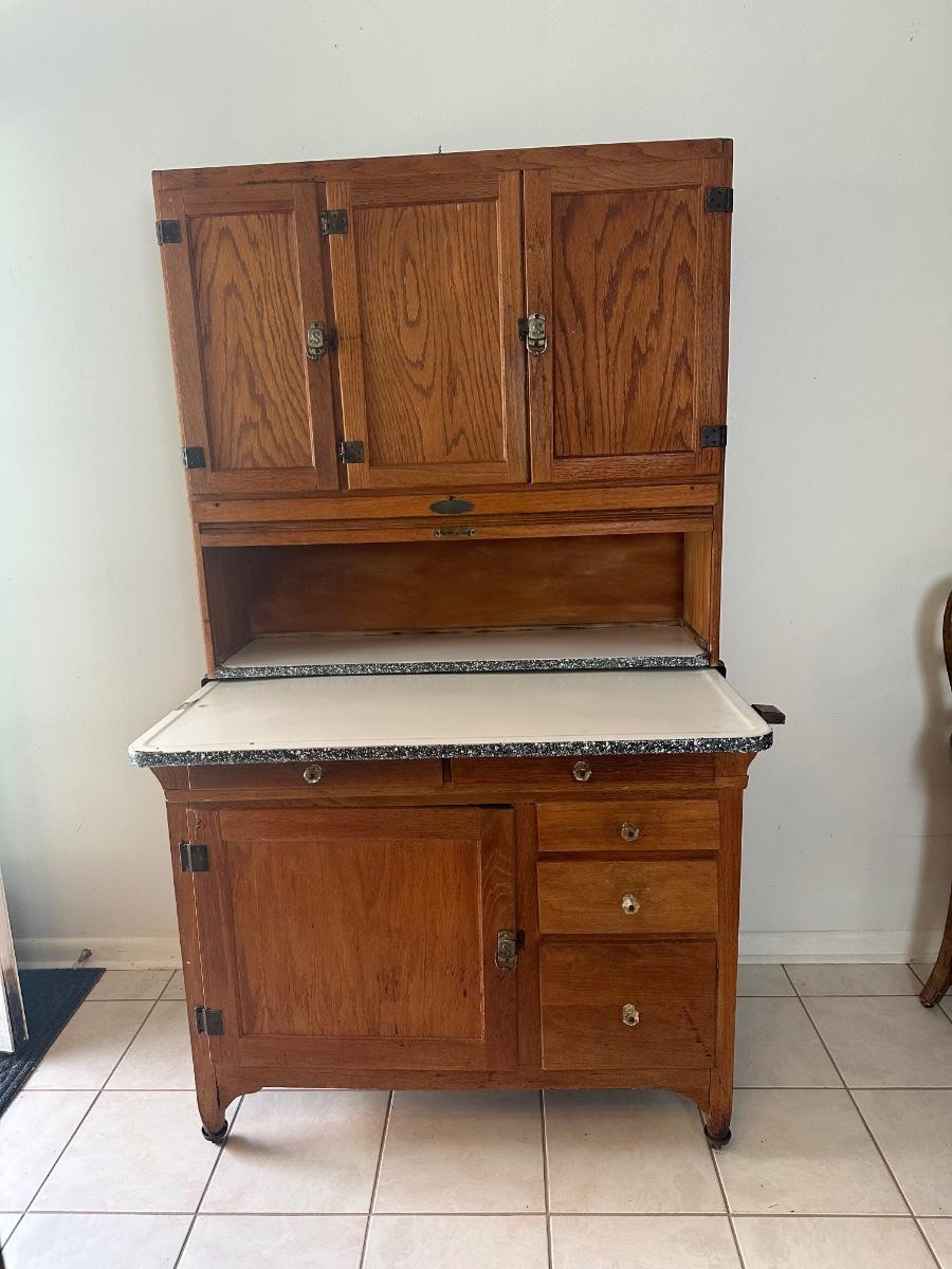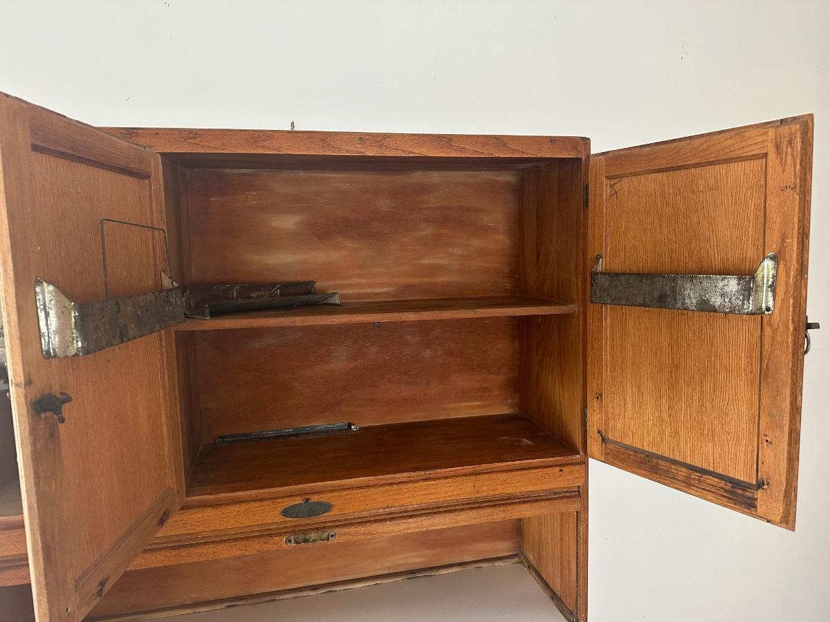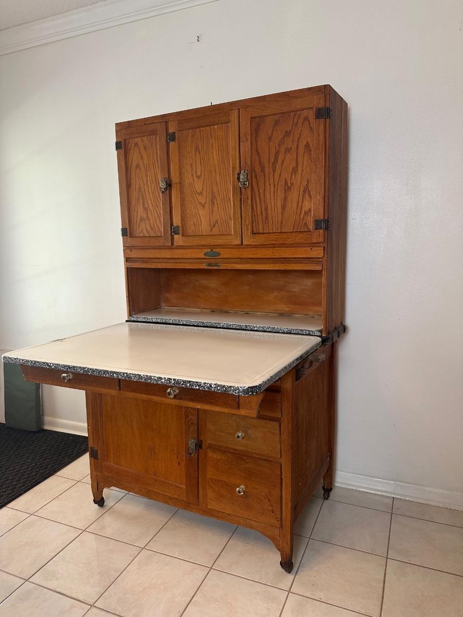 1930s Hoosier Oak Kitchen Cabinet with Porcelain Top