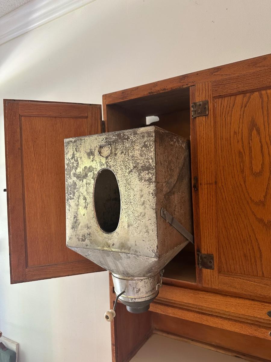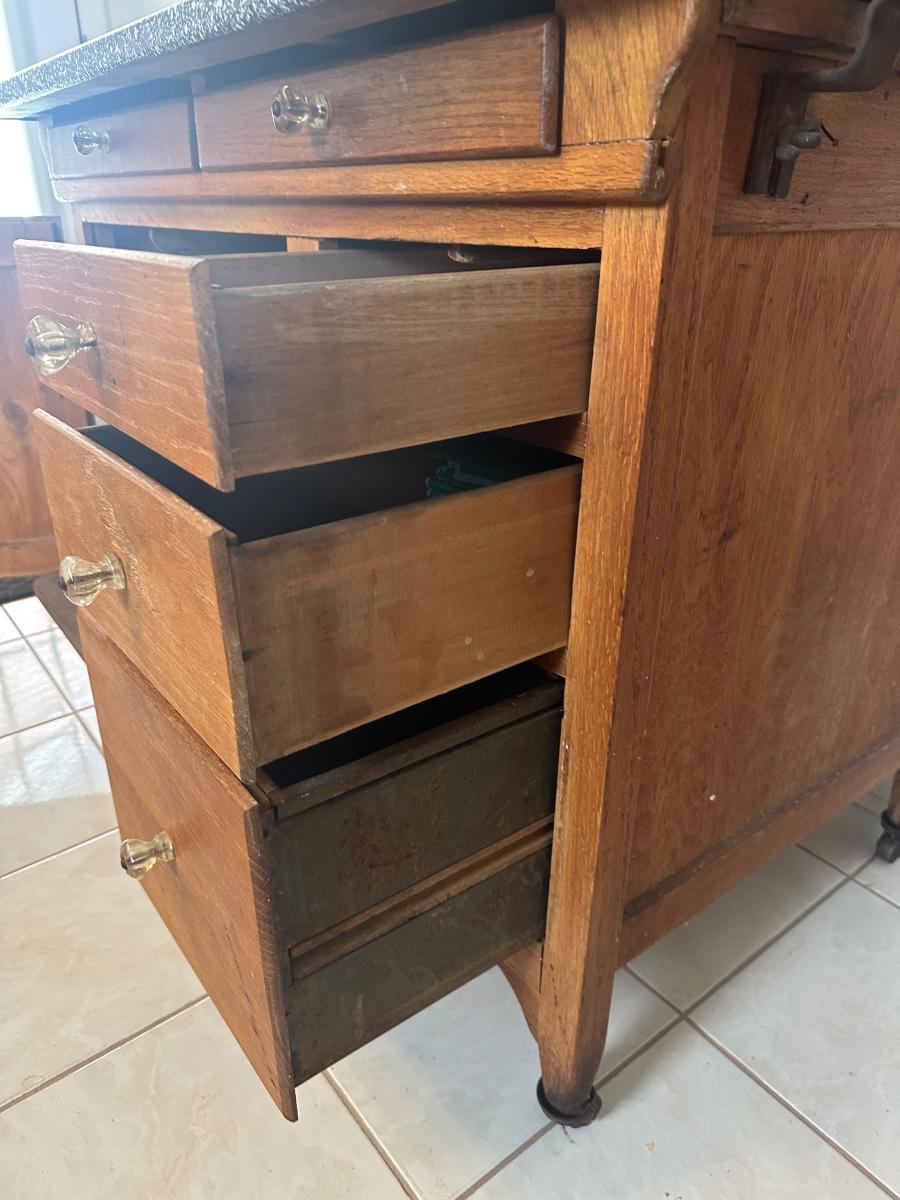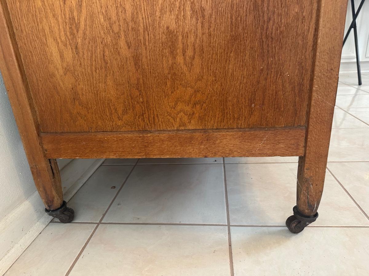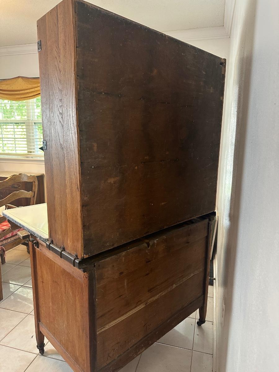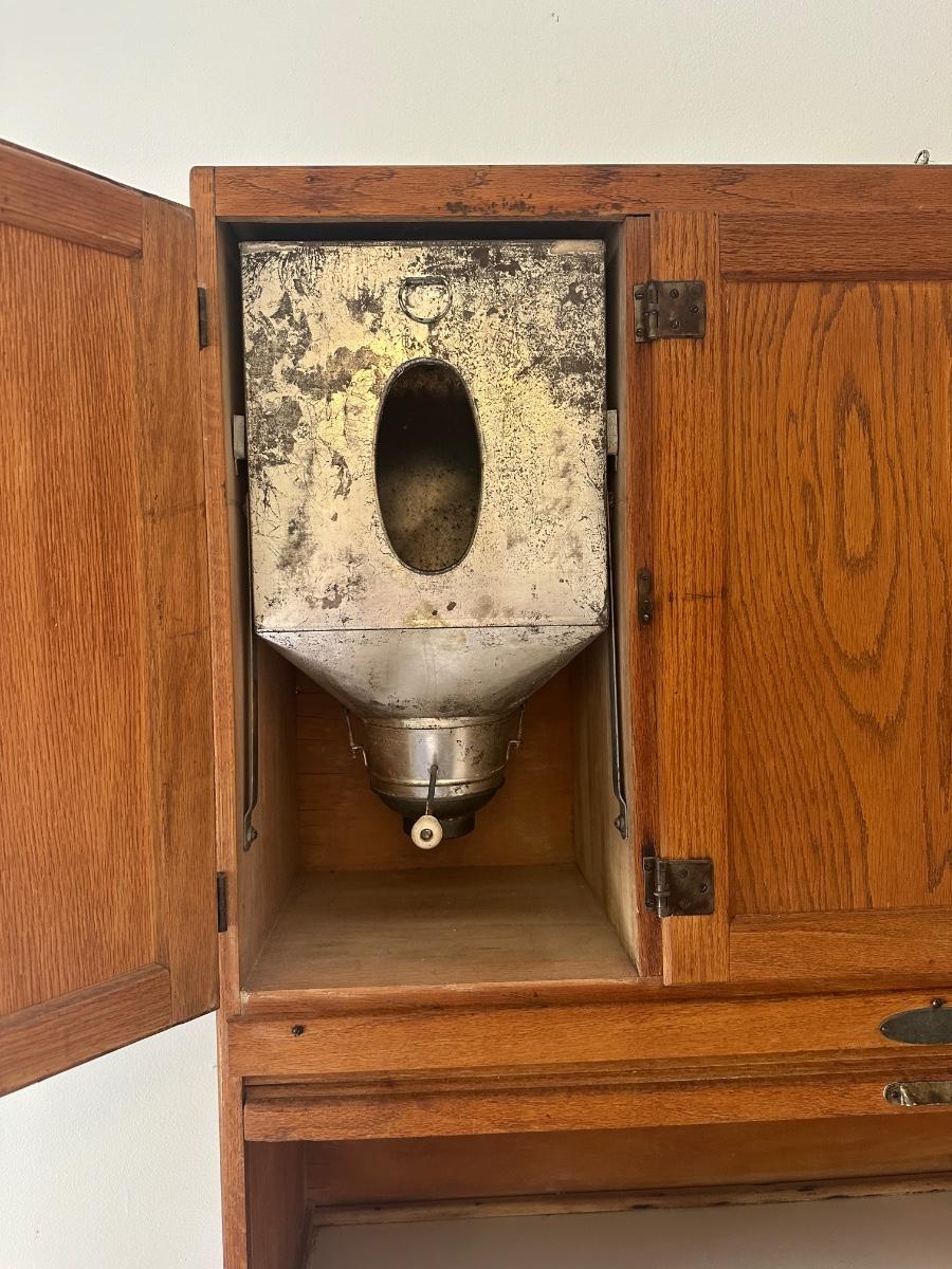 1930s Hoosier Oak Kitchen Cabinet with Porcelain Top