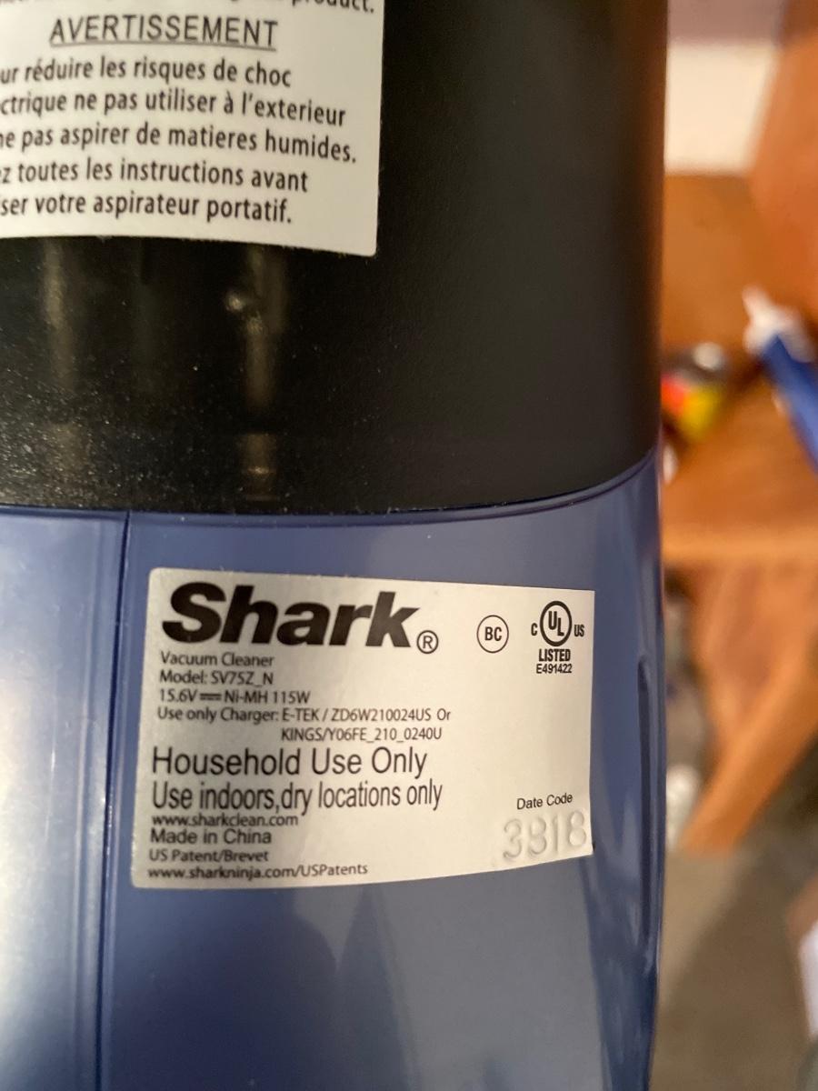 Lot includes a Shark cordless vacuum model # SV75Z_N, Eureka canister "Mighty Mite" vacuum, and a Hoover Portapower two speed vacuum. All vacuums powered on when tested.