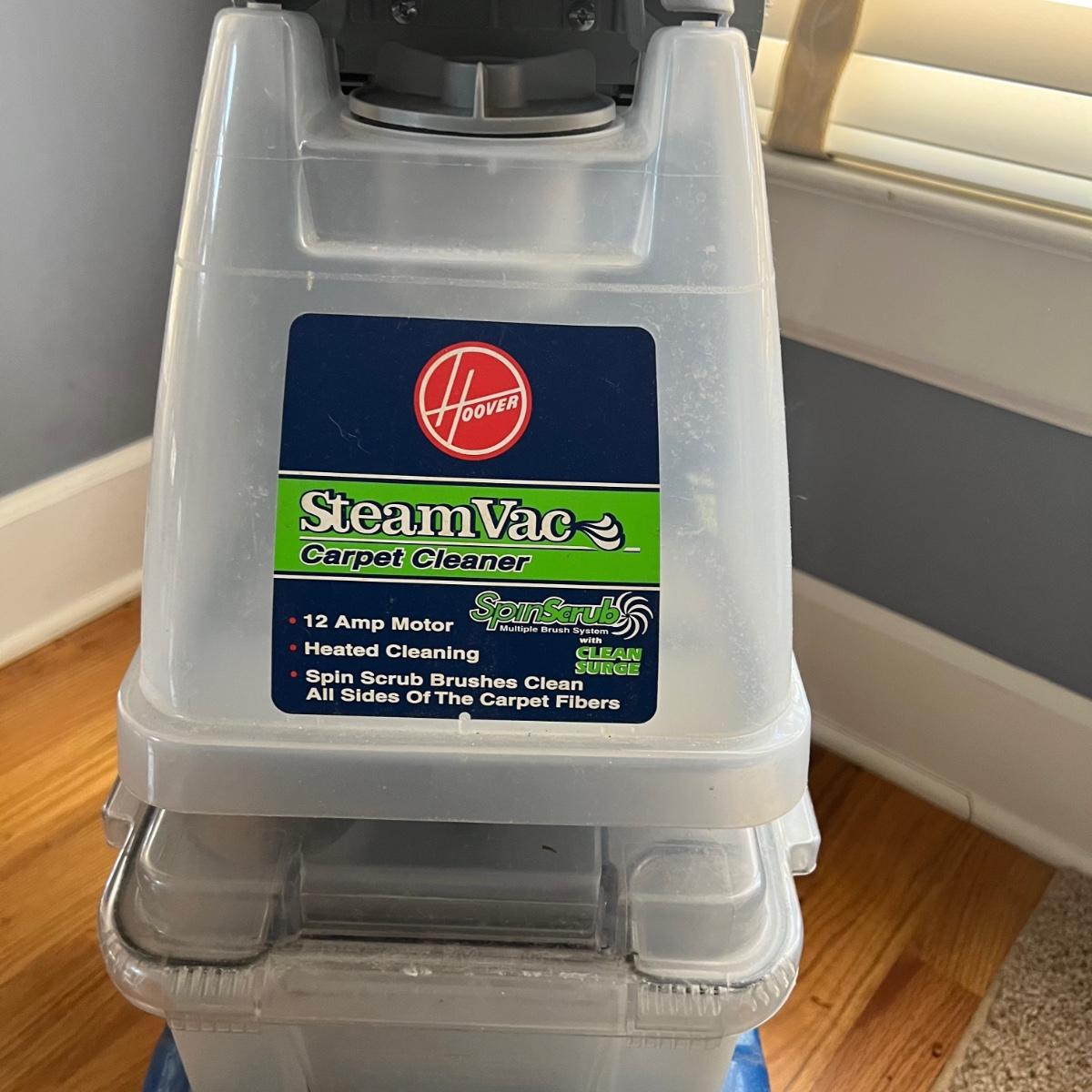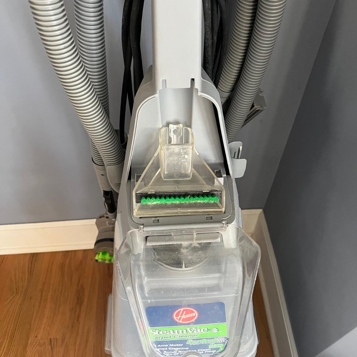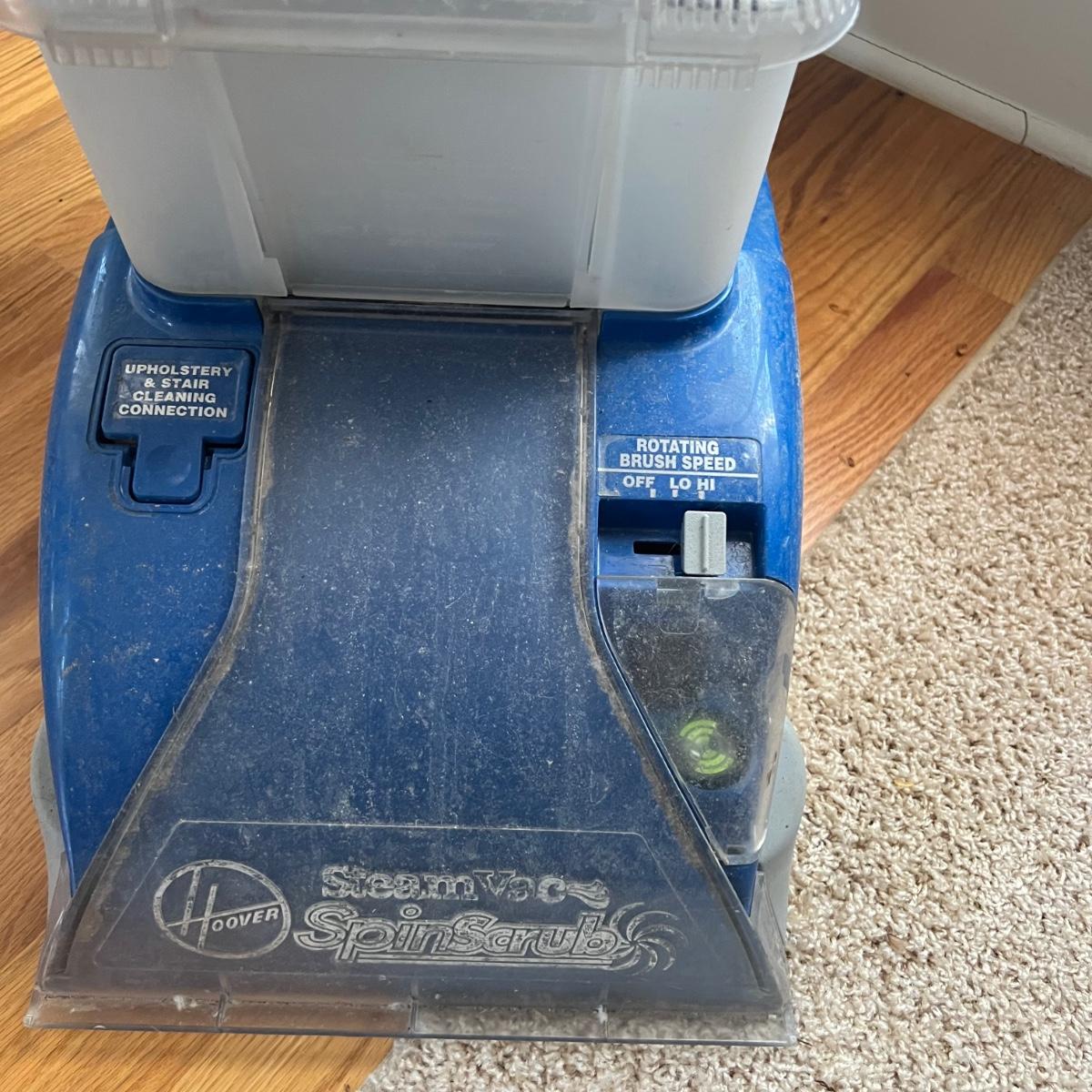 Hoover steam vac carpet cleaner. This model has spin scrub and clean surge and also has upholstery and stair cleaning accessory. Dual brush rotation speed. This unit includes both the two rotating upholstery cleaning attachment as well as the non-rotating upholstery attachment. As shown in photos. Item was tested and works. Local pickup only.