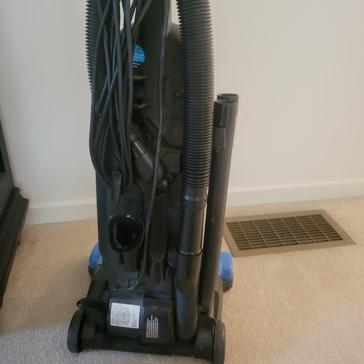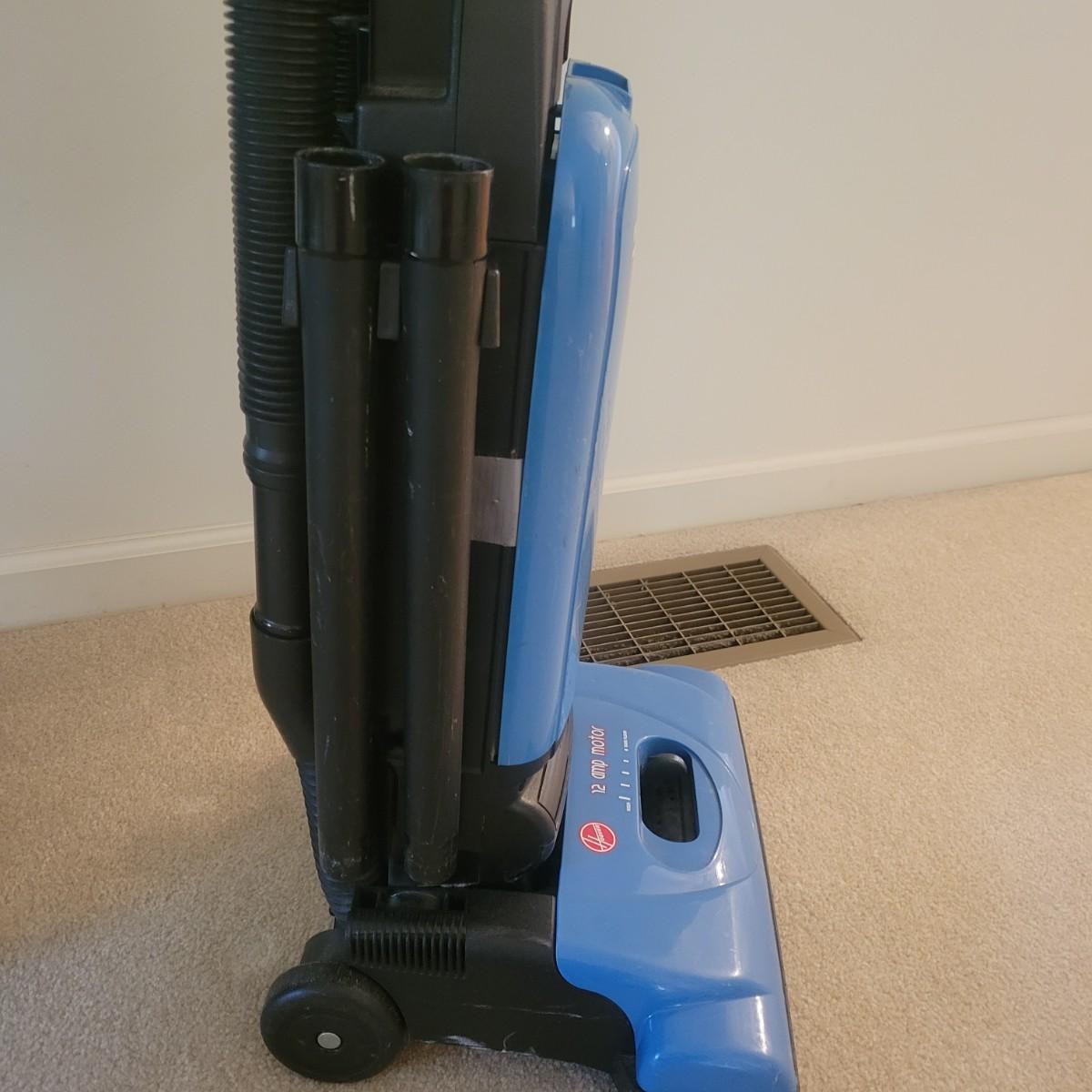 A Hoover widepath tempo vacuum cleaner that powered on when plugged in. This vacuum comes with accessories and features ab12 amp motor and allergen filtration. It measures approximately 15" x 12" x 43"H. Local pickup only