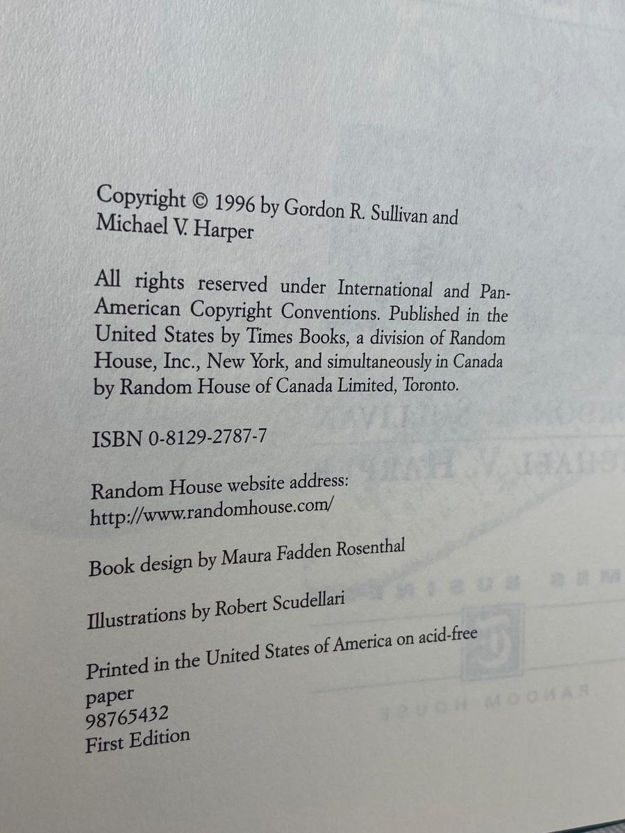 Hope Is Not a Method, hardback book about business leaders and what the military can teach them. The inside page has been inscribed to the previous owner. Good condition.