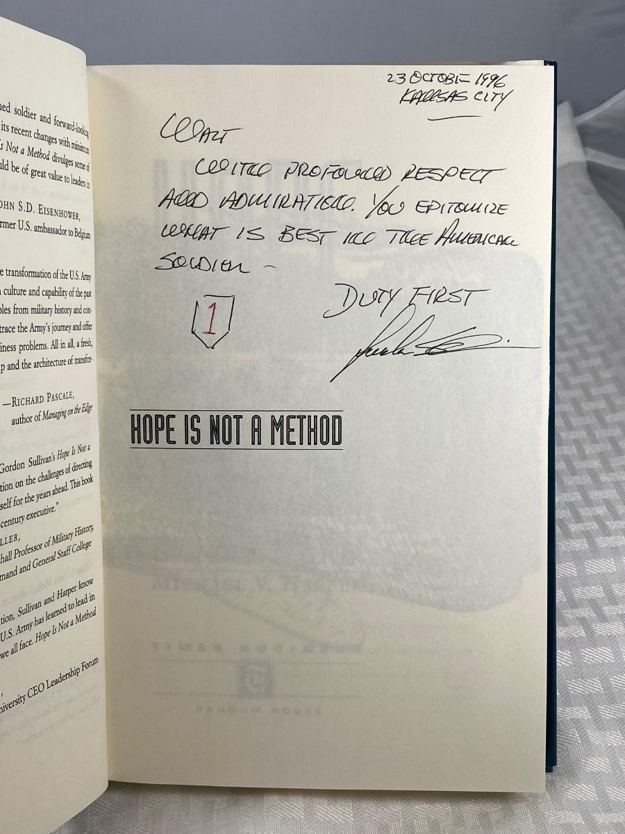 Hope Is Not a Method Hardback Book Business and the Military Inscribed