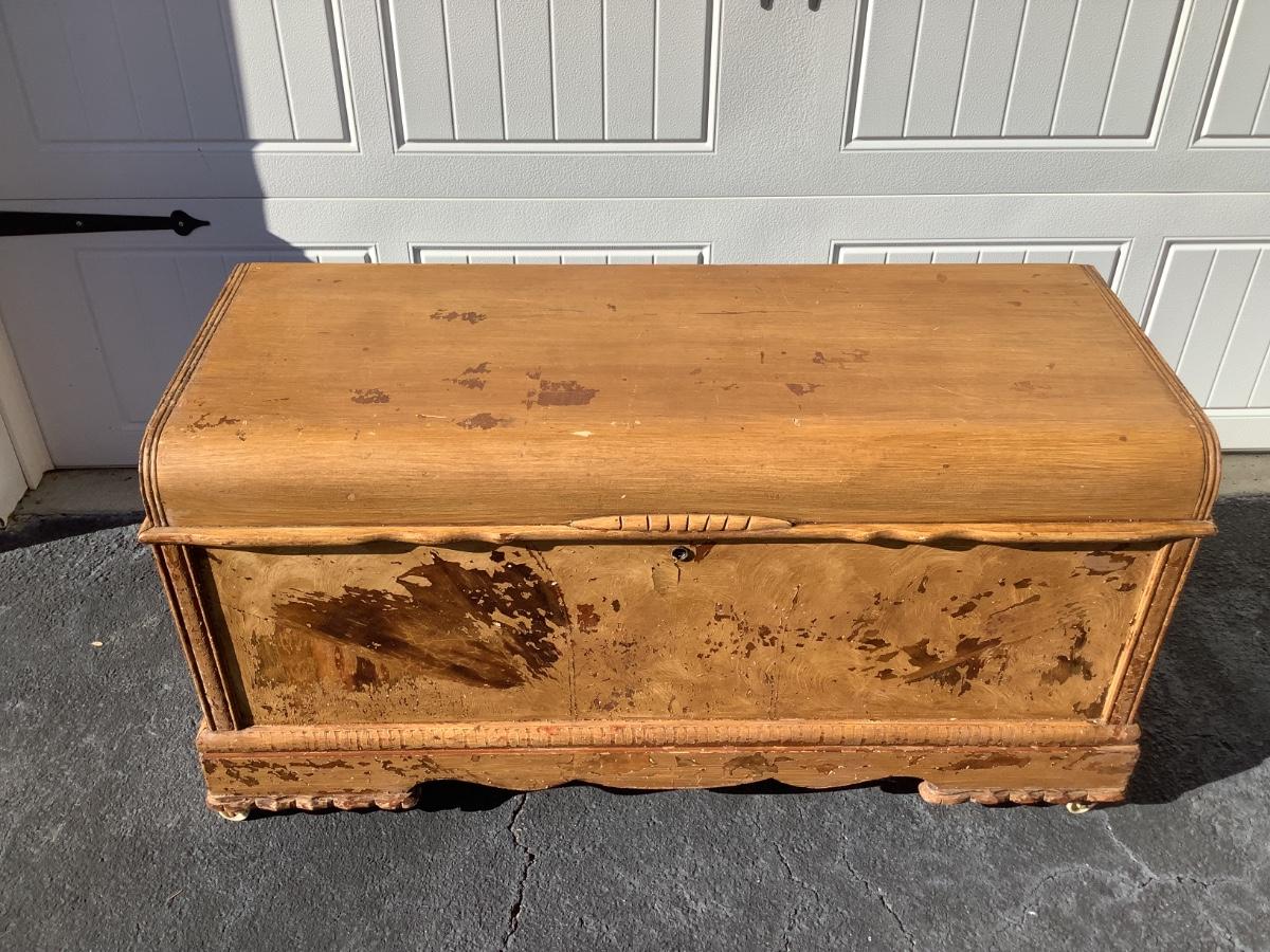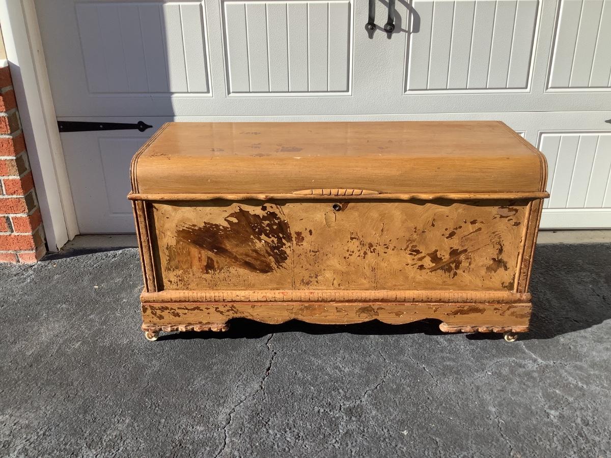 Hope/cedar chest with casters, Ross Sweetheart Cedar Chest, Ed Roos Co, Forest Park, Il 46"L 18'W 24"H