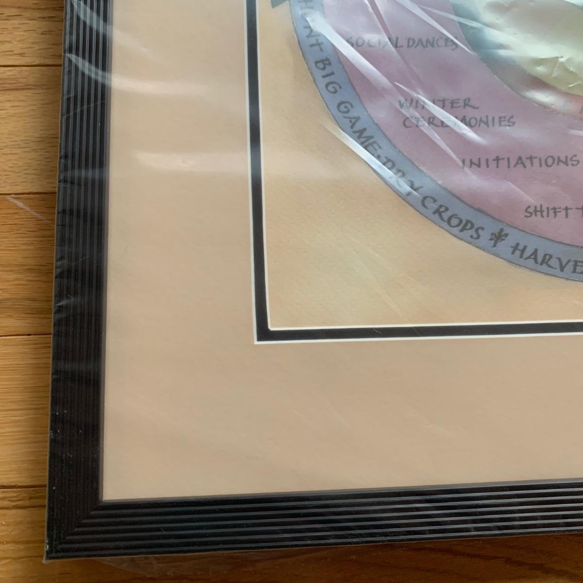 Nicely framed ‘Hopi Calendar’ original watercolor and ink art by Elizabeth Simmonds. The painting is double matted under a layer of glass. Frame material is uncertain but it could be metal or a hard plastic material. The art is in plastic protective wrap. The frame measures 17.75”sq.