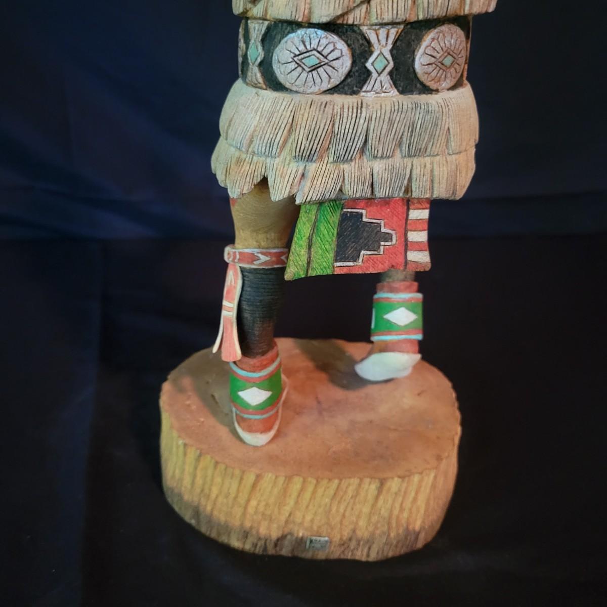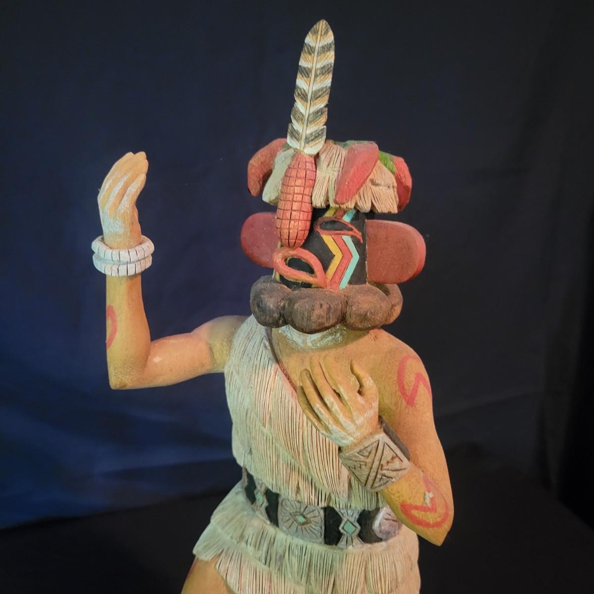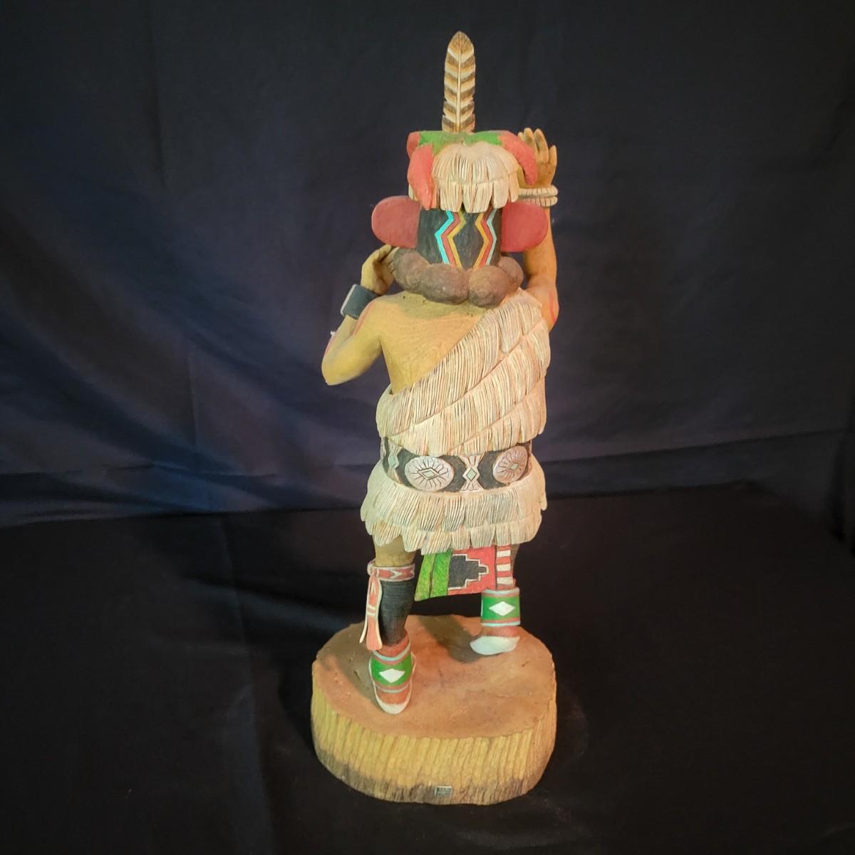 A hand carved cottonwood Kachina with the number 1950 written on its base. If features exquisite detail and rich colors. It measures approximately 6" x 4.5" x 16"H. Shipping available