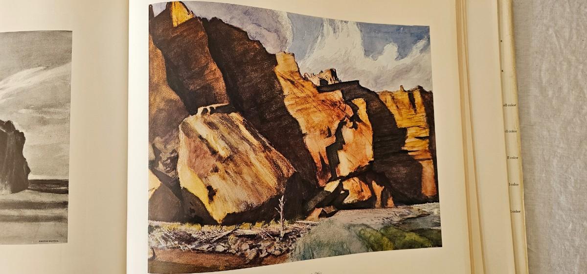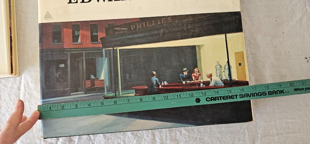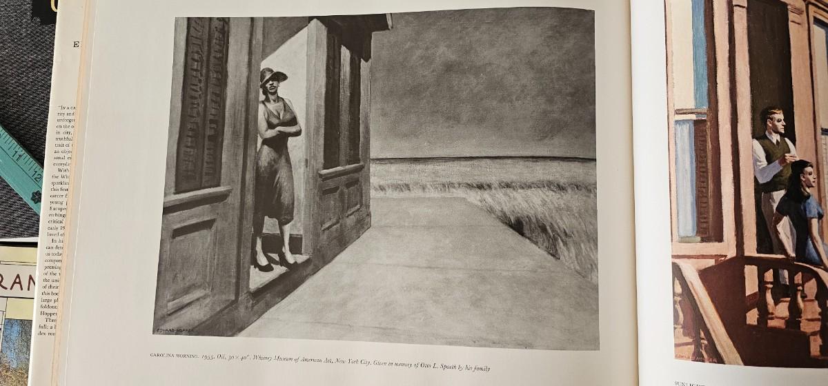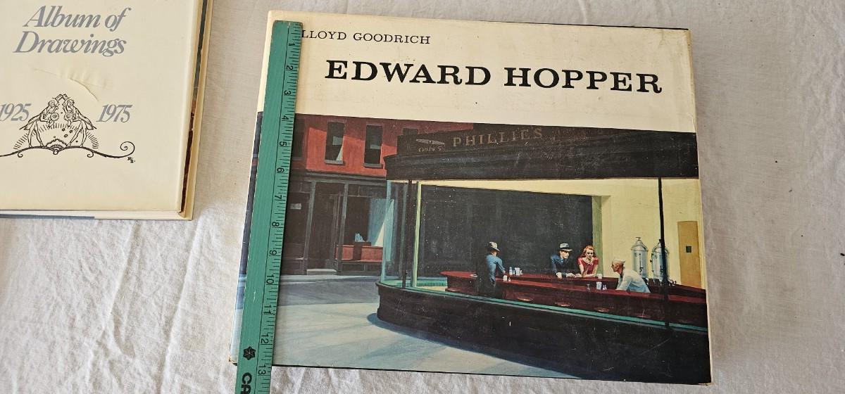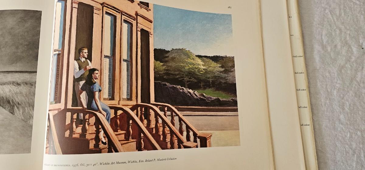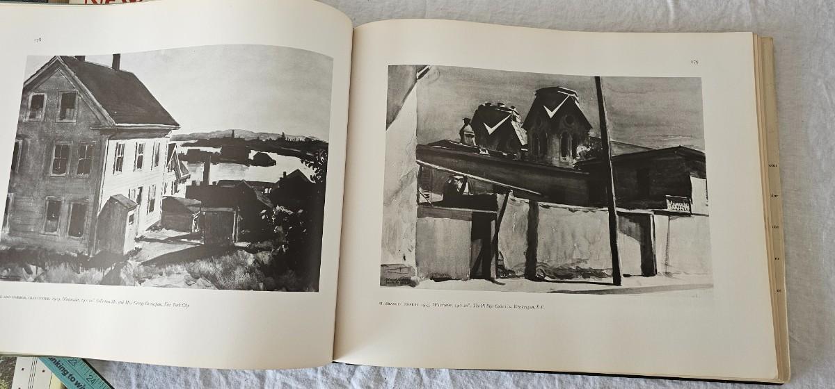 This is an enormous, heavy book that represents a significant portion of Hopper's work in oils, watercolors, drawings and etchings. A number of the color pages have fold outs, that expand the images. And nestled in between there is extensive copy about how the man lived his life. Best thing I've seen since the Chicago Art Museum featured Hopper in an incredible display.