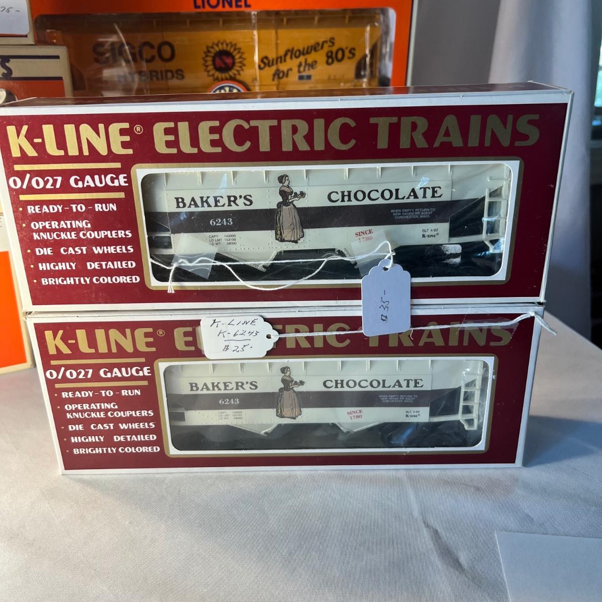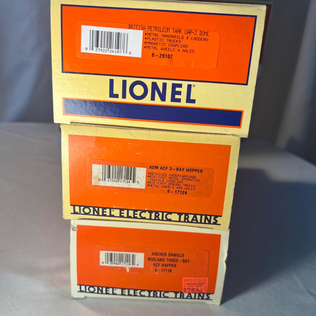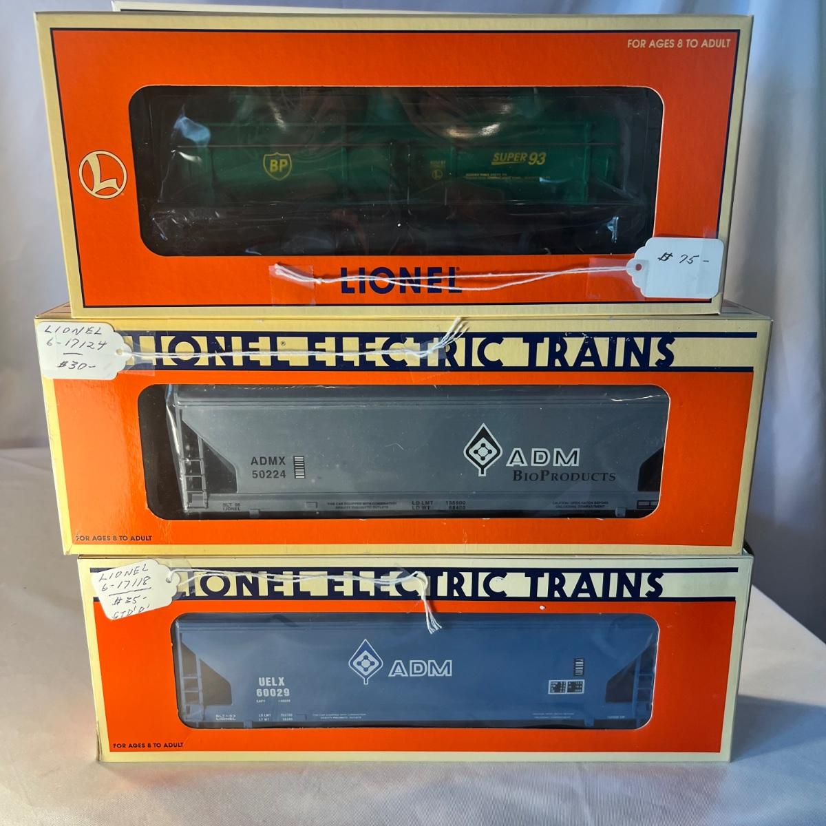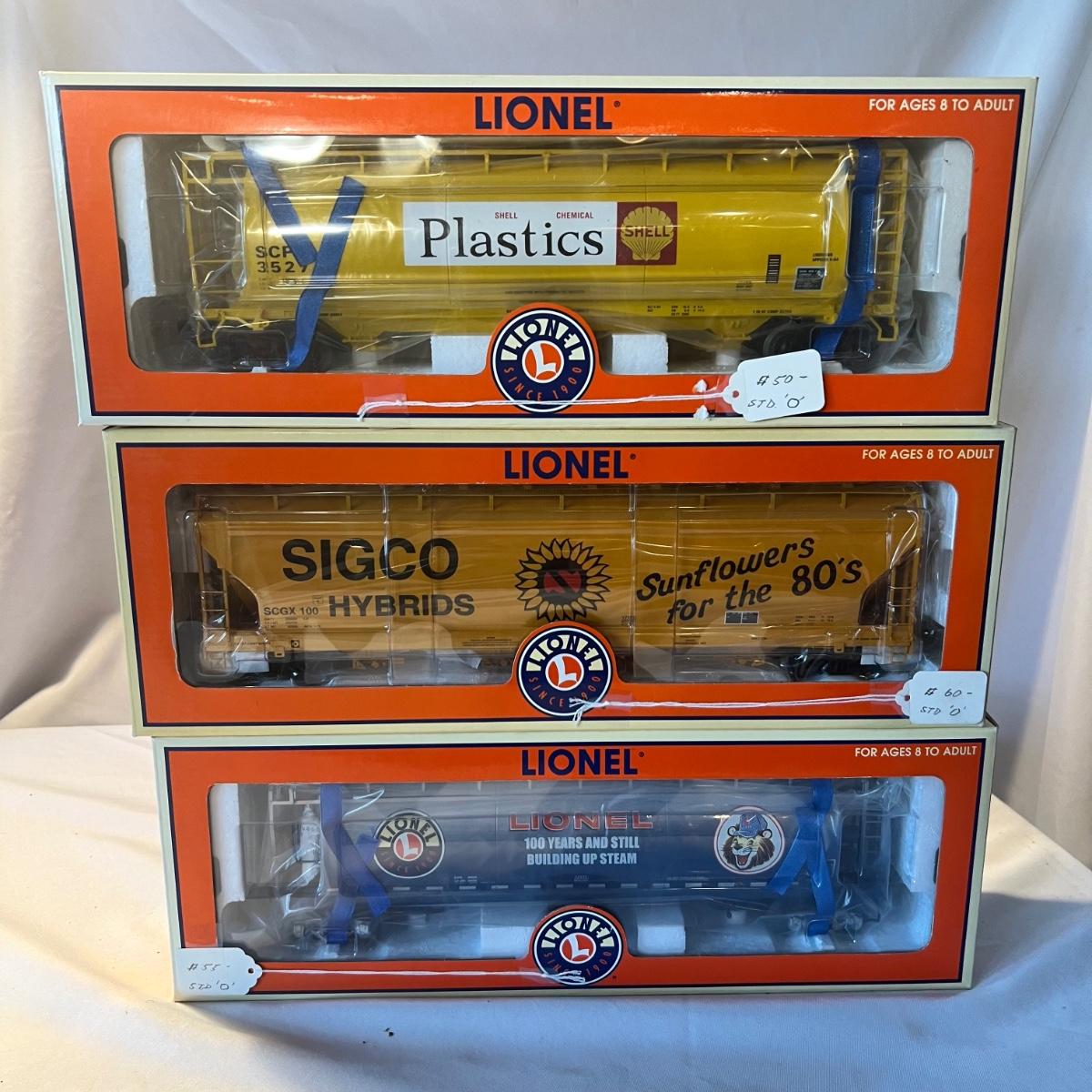 Eight Lionel and two K-Line hoppers. All come with their original boxes, see pics for full inventory. The Sigco Sunflowers for the 80’s measures approximately 3.5” x 3” x 14” long. Please note that any price tag seen on an item was not put there by Sterling Transitions and does not reflect the current value of the item.