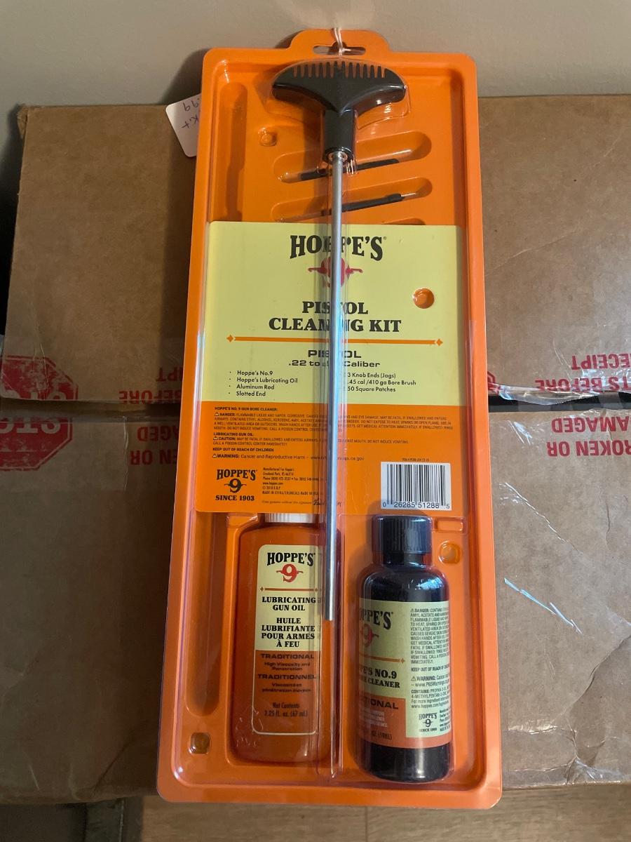 Hoppe's Pistol Cleaning Kits include what you need to clean a pistol - a cleaning rod, cleaner, oil, cleaning rod accessories and patches.