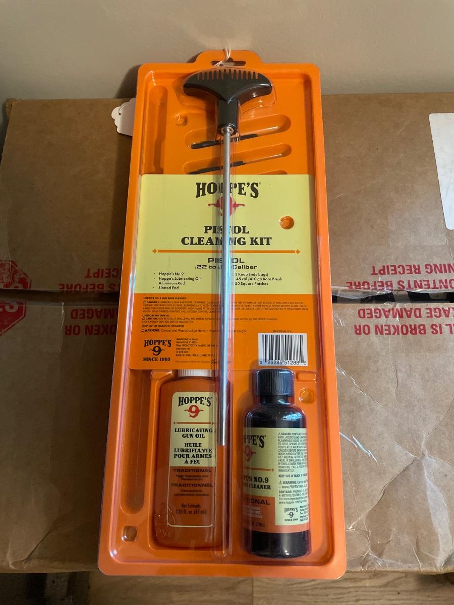 Hoppe's Pistol Cleaning Kits include what you need to clean a pistol - a cleaning rod, cleaner, oil, cleaning rod accessories and patches.