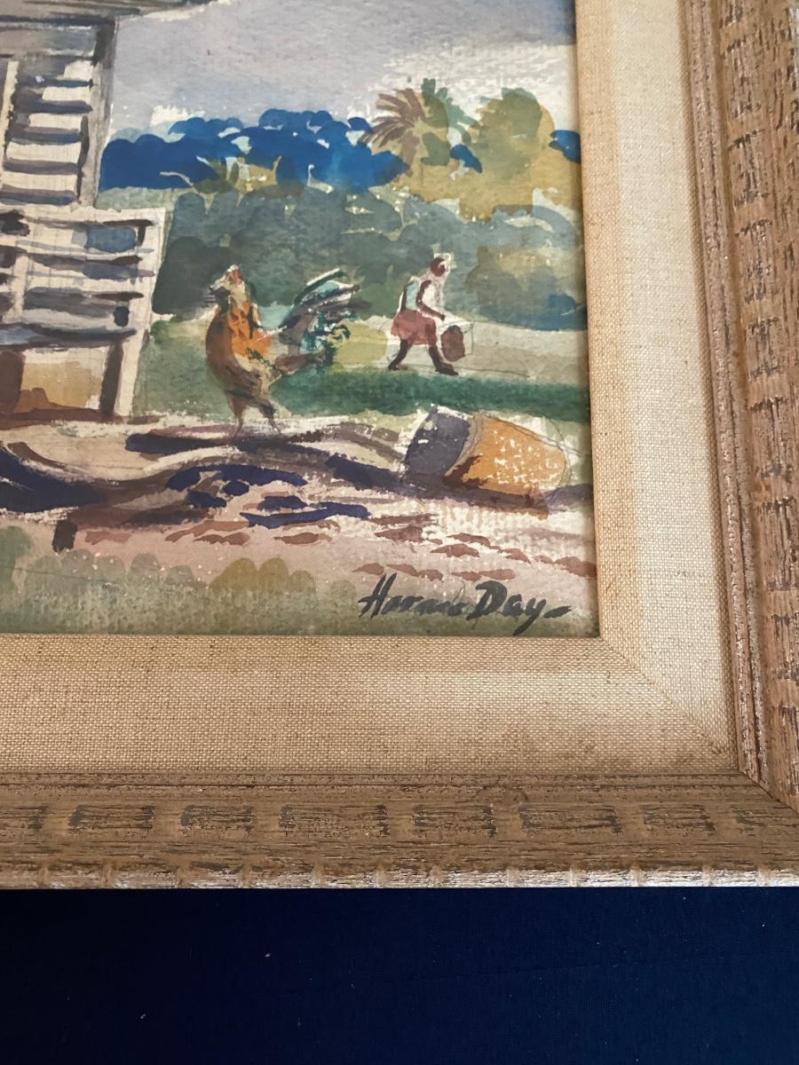 Horace Day Original Painting of Negro Cabin and Yard, Signed, 23x17