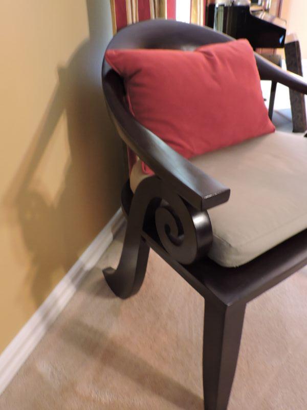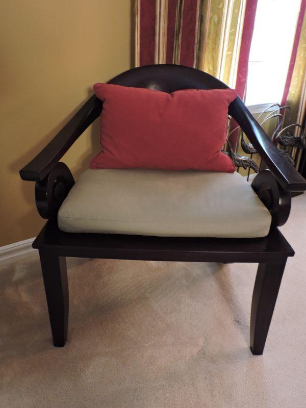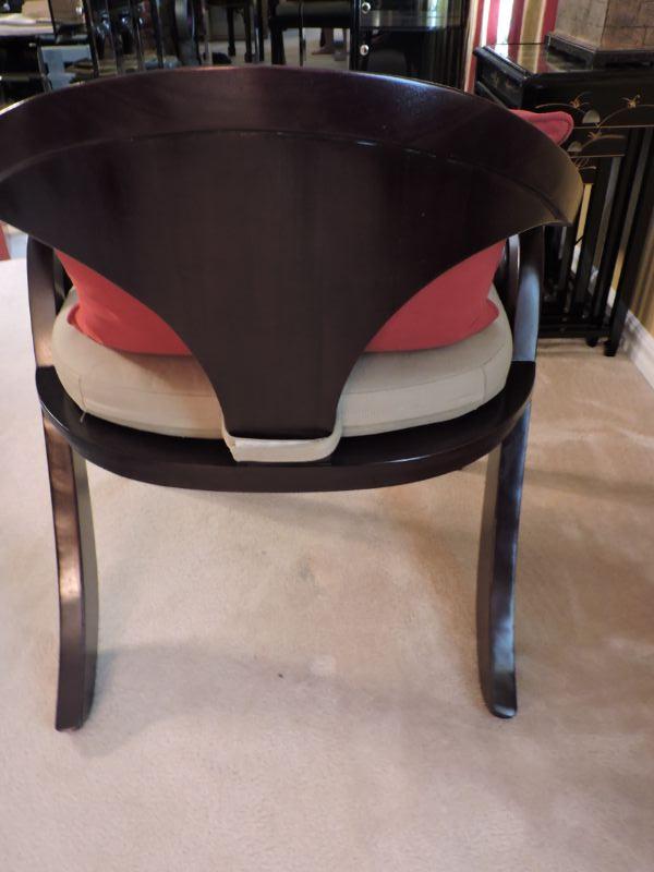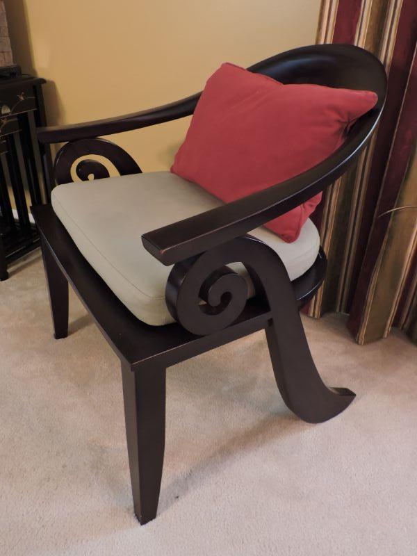 Beautiful statement chair! 29x32. Bought in 2004 for $780. **Please read Terms and Conditions before placing a bid. Pick up is Wednesday, September 25 from 4pm to 7pm and Saturday, September 28 from 9am to 1pm in Williamstown, NJ. All sales are final. All sales are as is, where is. Please review all photos. Any props included in photos are not included in listing. All measurements are approximate.
