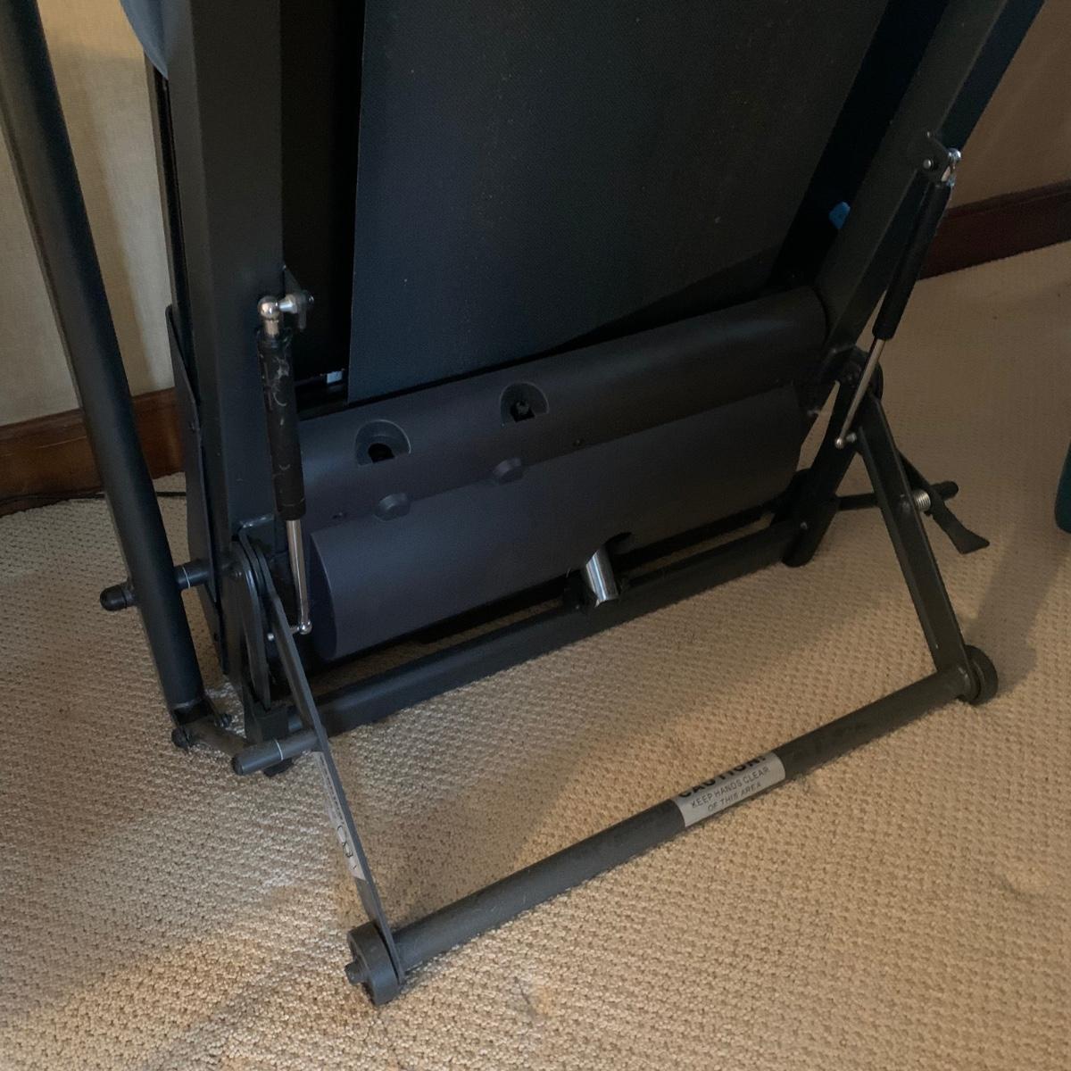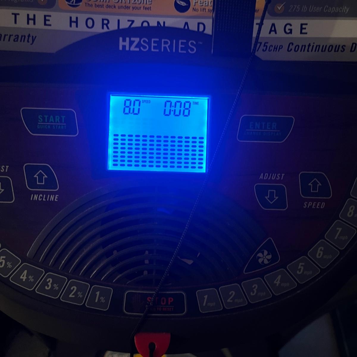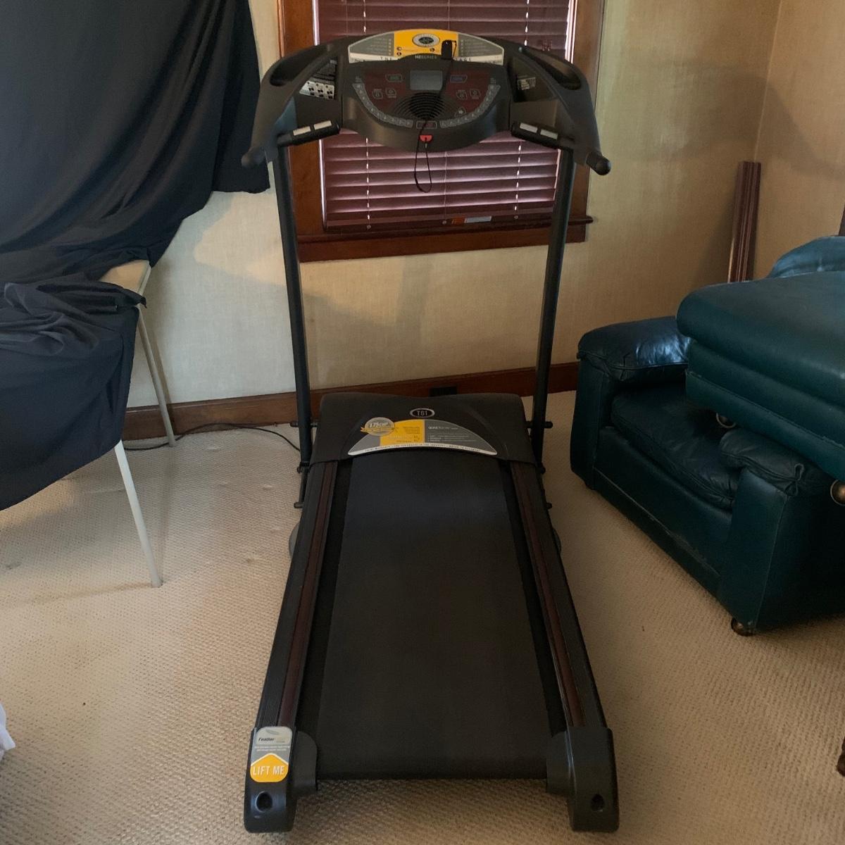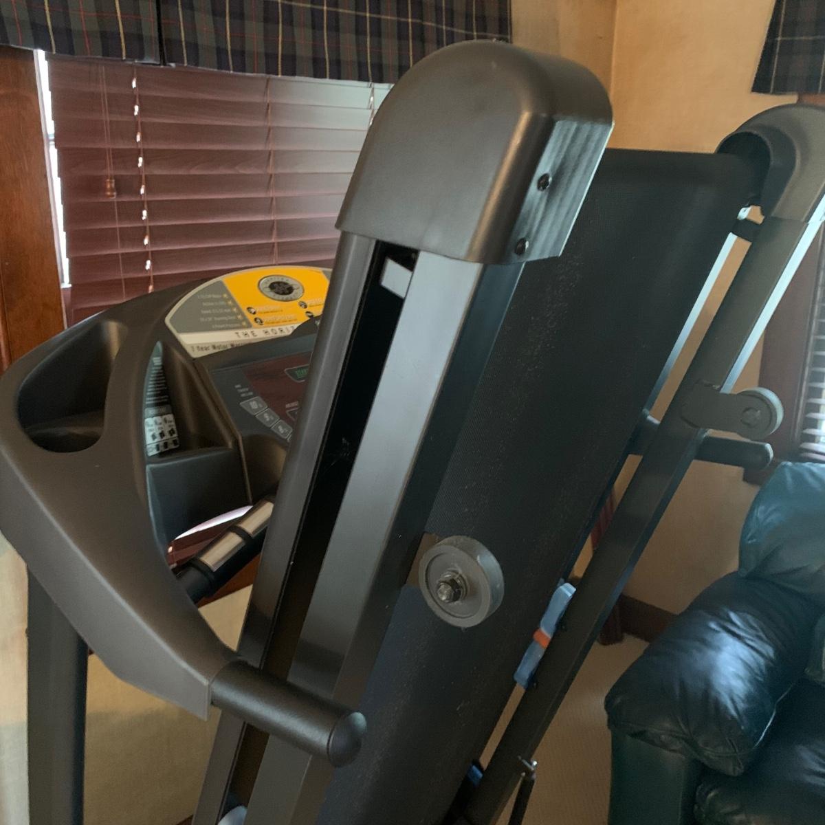 Horizon Fitness treadmill. Treadmill features featherlight lift system for easy storage. Treadmill measures approximately, 35” x 66” x 55”H. Treadmill powered on when plugged in. Please see photos for more details. Local pickup only. Winning bidder must bring assistance to help move and load this item due to its weight and/or size. Item will have to be moved down a flight of stairs and to the exit.