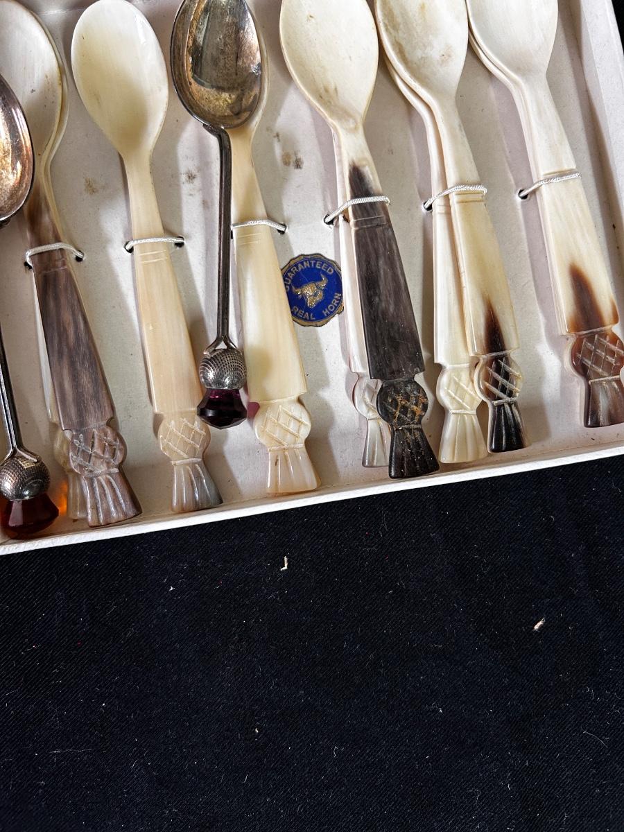 Horn Egg Spoon Set. Made in UK. 10 egg spoons.