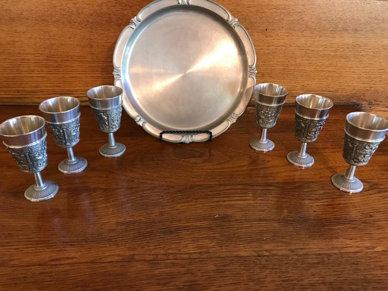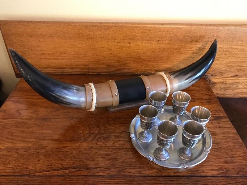 Horn & Pewter Cups & Tray